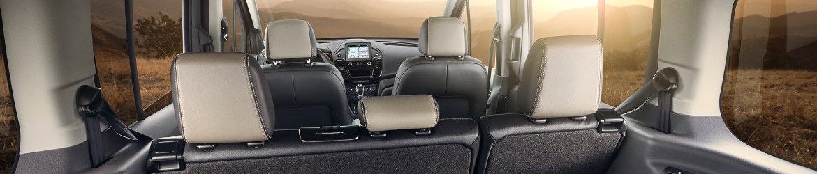 Ford offers the Transit Connect in the XL and XLT trim levels for both the cargo van and the passenger wagon and add the Titanium level for the passenger wagon. The XL starts off with 16-inch steel wheels, while the XLT adds fog lights, heated side mirrors, and rain-sensing windshield wipers. The Titanium trim for the passenger wagon adds a chrome front bumper, LED fog lights, and HID headlights. It also comes with a chrome rear bumper and a rear lift gate with fixed glass and a windshield wiper. Roof rails are an available option depending on the trim, and you can also add a trailer tow package.
