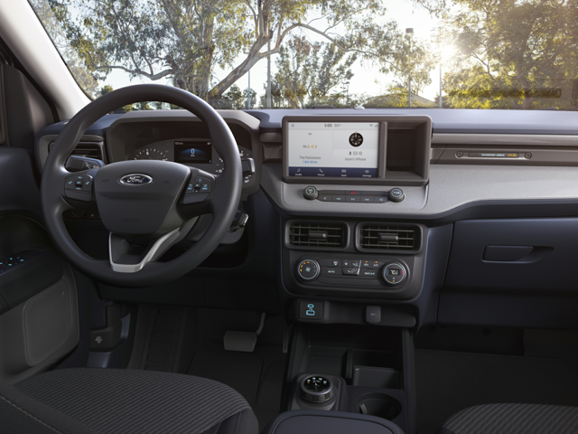 Inside the Maverick, there's ample space for everyone. The state-of-the-art 8.0-inch touchscreen infotainment system is standard on all Maverick trim levels, covering all your entertainment needs. In terms of connectivity, the vehicle offers Apple CarPlay and Android Auto compatibility. Adding to these perks, even the base model is appointed with an onboard Wi-Fi hotspot. The truck's bed is also thoughtfully designed, housing a 12-volt power outlet with an optional 110-volt outlet, and the overall ambience is amplified by high-quality features woven into the infotainment system.