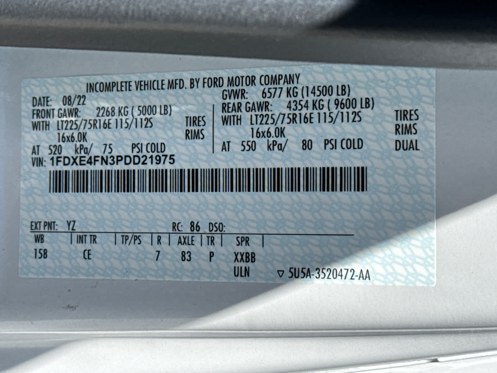 - Front Tire Size: LT225/75SR16