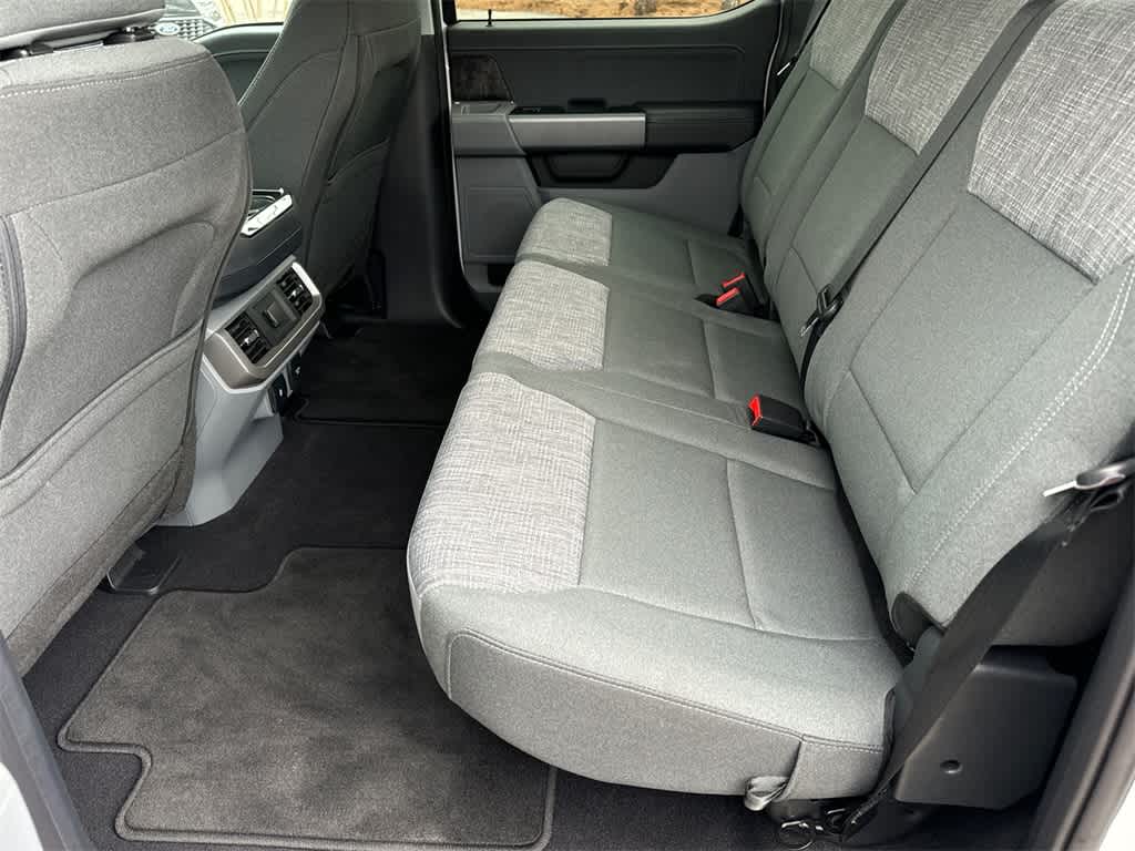 F-150 Lightning XLT is nicely equipped with 4-Wheel Disc Brakes, ABS brakes, Air Conditioning, Alloy wheels, Auto High-beam Headlights, Auto-dimming Rear-View mirror, Automatic temperature control, Brake assist, Compass, Delay-off headlights, Driver door bin, Driver vanity mirror, Dual front impact airbags, Dual front side impact airbags, Electronic Stability Control, Emergency communication system: SYNC 4 911 Assist, Four wheel independent suspension, Front anti-roll bar, Front Bucket Seats, Front Center Armrest, Front dual zone A/C, Front reading lights, Fully automatic headlights, Heated door mirrors, Heated front seats, Knee airbag, Low tire pressure warning, Navigation System, Occupant sensing airbag, On-Board Scales & Smart Hitch Removal, Outside temperature display, Overhead airbag, Overhead console, Panic alarm, Passenger door bin, Passenger vanity mirror, Power door mirrors, Power steering, Power windows, Radio data system, Rear anti-roll bar, Rear step bumper, Remote keyless entry, Security system, Speed control, Speed-sensing steering, Split folding rear seat, Steering wheel mounted audio controls, Telescoping steering wheel, Tilt steering wheel, Tough Bed Spray-In Bedliner, Traction control, Trip computer, and Variably intermittent wipers.