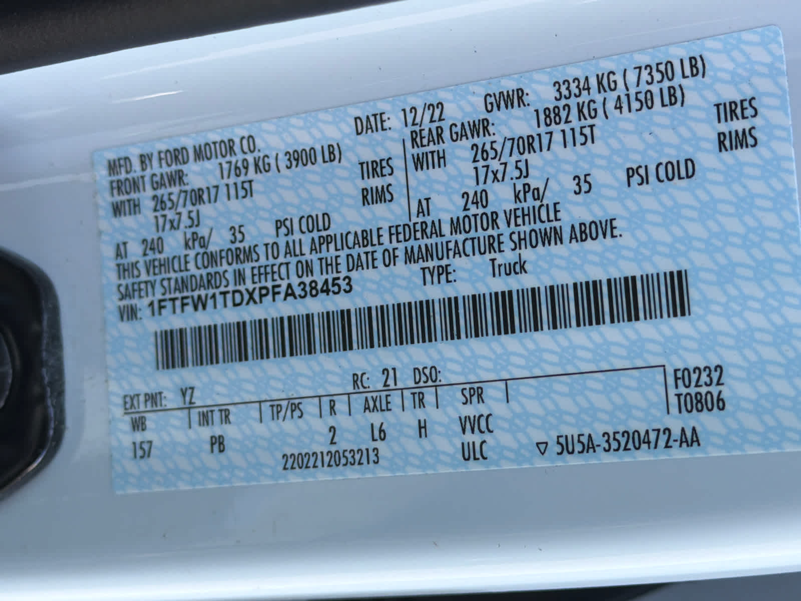 - Gross Axle Wt Rating - Front (lbs): 3450