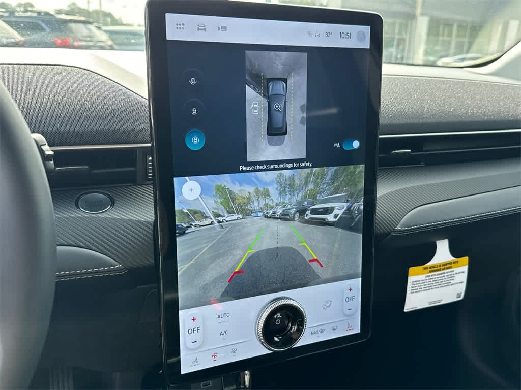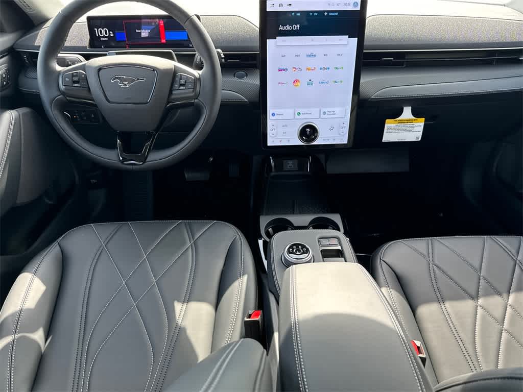 Mustang Mach-E Select is nicely equipped with Comfort Package Lite (Heated Front Row Seats, Heated Steering Wheel, and Memory Drivers Seat & Sideview Mirrors), Equipment Group 100A, Interior Protection Package (Pre-Installed) (1st & 2nd Row Floor Liners w/o Carpet Mats, Cargo Area Cover, and Cargo Floor Liner), 4-Wheel Disc Brakes, 6 Speakers, ABS brakes, ActiveX Bucket Seats, Air Conditioning, Alloy wheels, AM/FM radio: SiriusXM with 360L, AM/FM Stereo, Auto High-beam Headlights, Auto-dimming Rear-View mirror, Automatic temperature control, Axle Ratio: 9.791, Brake assist, Bumpers: body-color, Compass, Delay-off headlights, Driver door bin, Driver vanity mirror, Dual front impact airbags, Dual front side impact airbags, Electronic Stability Control, Emergency communication system: 911 Assist, Exterior Parking Camera Rear, Four wheel independent suspension, Front anti-roll bar, Front Bucket Seats, Front Center Armrest, Front dual zone A/C, Front reading lights, Fully automatic headlights, Garage door transmitter, Heated door mirrors, Illuminated entry, Knee airbag, Low tire pressure warning, Mobile Power Cord (120V/240V), Navigation System, Occupant sensing airbag, Outside temperature display, Overhead airbag, Overhead console, Panic alarm, Passenger door bin, Passenger vanity mirror, Power door mirrors, Power driver seat, Power steering, Power windows, Radio data system, Rain sensing wipers, Rear anti-roll bar, Rear seat center armrest, Rear side impact airbag, Rear window defroster, Rear window wiper, Remote keyless entry, Security system, SiriusXM Radio w/360L, Speed control, Speed-sensing steering, Speed-Sensitive Wipers, Split folding rear seat, Spoiler, Steering wheel mounted audio controls, SYNC 4A w/Enhanced Voice Recognition, Telescoping steering wheel, Tilt steering wheel, Traction control, Trip computer, Turn signal indicator mirrors, Variably intermittent wipers, and Wheels: 19 Machined-Face Aluminum.