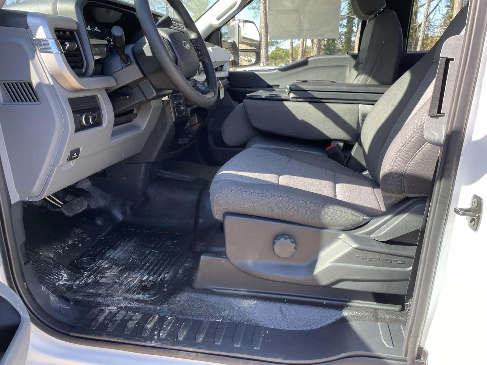 F-550 SuperDuty XL is nicely equipped with GVWR: 18,000 lbs Payload Package, Order Code 660A, 4WD, 120V/400W Outlet, 4-Wheel Disc Brakes, 4.88 Axle Ratio, 410 Amp Dual Alternators, 6 Speakers, ABS brakes, Air Conditioning, AM/FM radio, Brake assist, Cloth 40/20/40 Split Bench Seat, Compass, Delay-off headlights, Dual 68 AH/65 AGM Battery, Dual front impact airbags, Dual front side impact airbags, Dual rear wheels, Emergency communication system: SYNC 4 911 Assist, Exterior Backup Alarm (Pre-Installed), Front anti-roll bar, Front Center Armrest w/Storage, Front License Plate Bracket, Front reading lights, Fully automatic headlights, HD Vinyl 40/20/40 Split Bench Seat, Heated door mirrors, Illuminated entry, Interior Work Surface, Limited Slip w/4.10 Axle Ratio, Outside temperature display, Overhead airbag, Overhead console, Panic alarm, Passenger cancellable airbag, Passenger vanity mirror, Platform Running Boards, Power door mirrors, Power steering, Power windows, Rear anti-roll bar, Rear View Camera & Prep Kit, Remote keyless entry, Speed control, Split folding rear seat, Steering wheel mounted audio controls, SYNC 4 Communications & Entertainment System, Tachometer, Telescoping steering wheel, Tilt steering wheel, Traction control, Trip computer, Turn signal indicator mirrors, Variably intermittent wipers, and Wheels: 19.5 x 6 Argent Painted Steel.