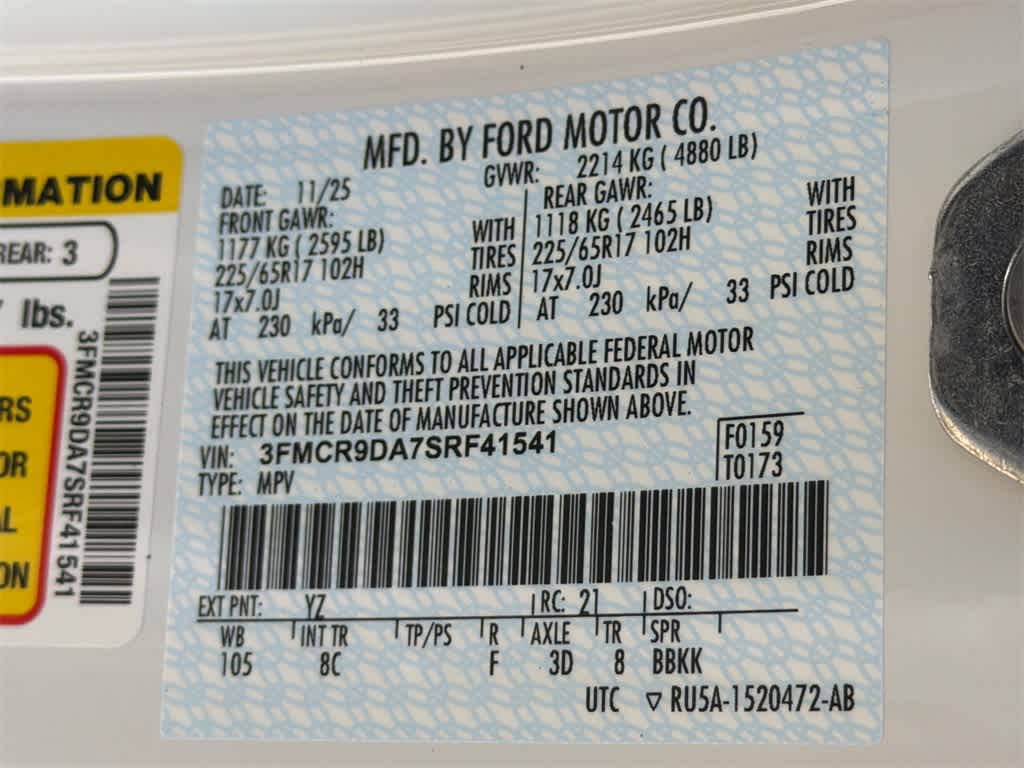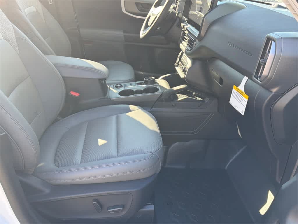 Bronco Sport Badlands is nicely equipped with Badlands Tech Package (B&O Sound System by Bang & Olufsen, Connected Navigation, and HD Radio), Equipment Group 400A, 4-Wheel Disc Brakes, 6 Speakers, ABS brakes, Air Conditioning, Alloy wheels, AM/FM radio: SiriusXM, AM/FM Stereo, Auto High-beam Headlights, Auto-dimming Rear-View mirror, Automatic temperature control, Brake assist, Compass, Delay-off headlights, Driver door bin, Driver vanity mirror, Dual front impact airbags, Dual front side impact airbags, Electronic Stability Control, Emergency communication system: SYNC 4 911 Assist, Four wheel independent suspension, Front anti-roll bar, Front Bucket Seats, Front Center Armrest, Front fog lights, Front reading lights, Fully automatic headlights, Garage door transmitter, Heated door mirrors, Heated front seats, Heated steering wheel, Illuminated entry, Knee airbag, Leather Trimmed Front Bucket Seats, Low tire pressure warning, Memory seat, Occupant sensing airbag, Outside temperature display, Overhead airbag, Overhead console, Panic alarm, Passenger door bin, Passenger vanity mirror, Power door mirrors, Power driver seat, Power Moonroof, Power passenger seat, Power steering, Power windows, Radio data system, Rear anti-roll bar, Rear reading lights, Rear seat center armrest, Rear window defroster, Rear window wiper, Remote keyless entry, Security system, SiriusXM, Speed control, Speed-sensing steering, Speed-Sensitive Wipers, Split folding rear seat, Steering wheel mounted audio controls, SYNC 4 w/Enhanced Voice Recognition, Tachometer, Telescoping steering wheel, Tilt steering wheel, Traction control, Trip computer, Variably intermittent wipers, and Wheels: 17 Matte Black-Painted Aluminum. Price includes: $2000 - Retail Customer Cash. Exp. 03/31/2026 $750 - Retail Customer Cash. Exp. 03/31/2026