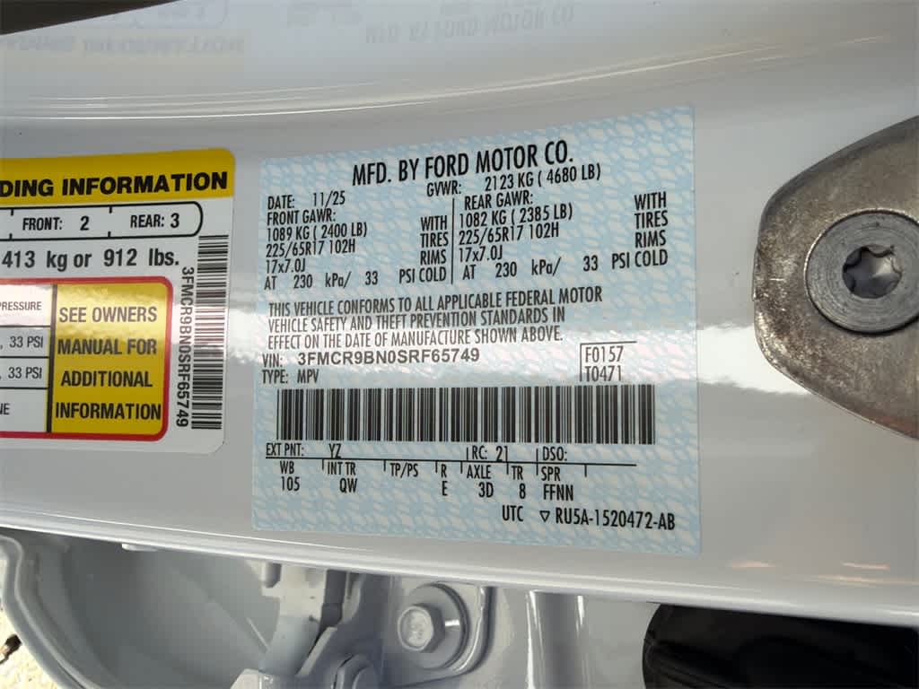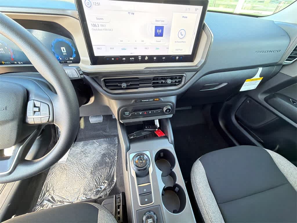 Bronco Sport Big Bend is nicely equipped with Equipment Group 200A, 4-Wheel Disc Brakes, 6 Speakers, ABS brakes, Air Conditioning, Alloy wheels, AM/FM radio: SiriusXM, AM/FM Stereo, Auto High-beam Headlights, Automatic temperature control, Brake assist, Cloth w/Easy-to-Clean Front Bucket Seats, Compass, Delay-off headlights, Driver door bin, Driver vanity mirror, Dual front impact airbags, Dual front side impact airbags, Electronic Stability Control, Emergency communication system: SYNC 4 911 Assist, Four wheel independent suspension, Front anti-roll bar, Front Bucket Seats, Front Center Armrest, Front reading lights, Fully automatic headlights, Heated door mirrors, Illuminated entry, Knee airbag, Low tire pressure warning, Occupant sensing airbag, Outside temperature display, Overhead airbag, Overhead console, Panic alarm, Passenger door bin, Passenger vanity mirror, Power door mirrors, Power steering, Power windows, Radio data system, Rear anti-roll bar, Rear Parking Sensors, Rear reading lights, Rear seat center armrest, Rear window defroster, Rear window wiper, Remote keyless entry, Security system, SiriusXM, Speed control, Speed-sensing steering, Speed-Sensitive Wipers, Split folding rear seat, Steering wheel mounted audio controls, SYNC 4 w/Enhanced Voice Recognition, Tachometer, Telescoping steering wheel, Tilt steering wheel, Traction control, Trip computer, Variably intermittent wipers, and Wheels: 17 Carbonized Gray-Painted Aluminum. Price includes: $2000 - Retail Customer Cash. Exp. 03/31/2026