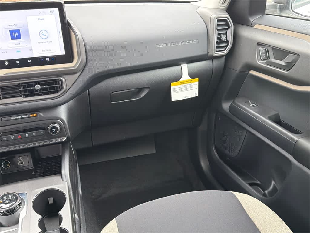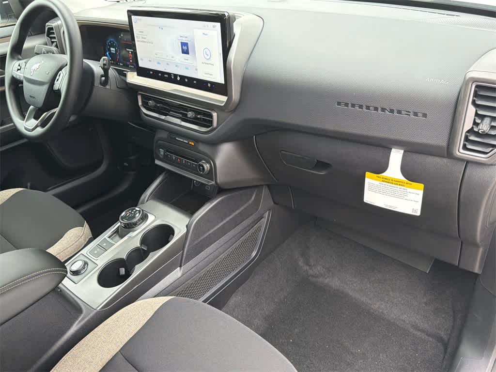 Bronco Sport Big Bend is nicely equipped with Equipment Group 200A, 4-Wheel Disc Brakes, 6 Speakers, ABS brakes, Air Conditioning, Alloy wheels, AM/FM radio: SiriusXM, AM/FM Stereo, Auto High-beam Headlights, Automatic temperature control, Brake assist, Cloth w/Easy-to-Clean Front Bucket Seats, Compass, Delay-off headlights, Driver door bin, Driver vanity mirror, Dual front impact airbags, Dual front side impact airbags, Electronic Stability Control, Emergency communication system: SYNC 4 911 Assist, Four wheel independent suspension, Front anti-roll bar, Front Bucket Seats, Front Center Armrest, Front reading lights, Fully automatic headlights, Heated door mirrors, Illuminated entry, Knee airbag, Low tire pressure warning, Occupant sensing airbag, Outside temperature display, Overhead airbag, Overhead console, Panic alarm, Passenger door bin, Passenger vanity mirror, Power door mirrors, Power steering, Power windows, Radio data system, Rear anti-roll bar, Rear Parking Sensors, Rear reading lights, Rear seat center armrest, Rear window defroster, Rear window wiper, Remote keyless entry, Security system, SiriusXM, Speed control, Speed-sensing steering, Speed-Sensitive Wipers, Split folding rear seat, Steering wheel mounted audio controls, SYNC 4 w/Enhanced Voice Recognition, Tachometer, Telescoping steering wheel, Tilt steering wheel, Traction control, Trip computer, Variably intermittent wipers, Wheels: 17 Carbonized Gray Painted Aluminum, and Wheels: 17 Carbonized Gray-Painted Aluminum. Price includes: $2000 - Retail Customer Cash. Exp. 03/31/2026