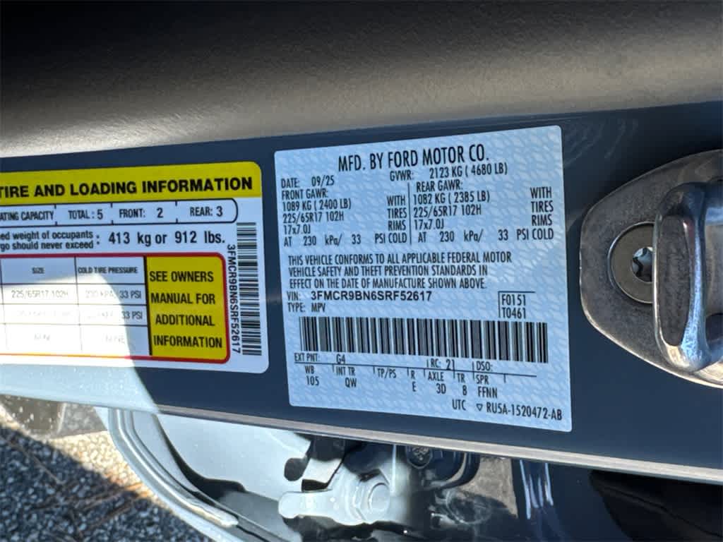 Bronco Sport Big Bend is nicely equipped with Convenience Package (Front Driver/Passenger Seat Back Map Pockets, Heated 8-Way Power Drivers Seat, LED Fog Lamps, Premium Wrapped Steering Wheel, and Universal Garage Door Opener (UGDO)), Equipment Group 200A, 4-Wheel Disc Brakes, 6 Speakers, ABS brakes, Air Conditioning, Alloy wheels, AM/FM radio: SiriusXM, AM/FM Stereo, Auto High-beam Headlights, Automatic temperature control, Brake assist, Cloth w/Easy-to-Clean Front Bucket Seats, Compass, Delay-off headlights, Driver door bin, Driver vanity mirror, Dual front impact airbags, Dual front side impact airbags, Electronic Stability Control, Emergency communication system: SYNC 4 911 Assist, Four wheel independent suspension, Front anti-roll bar, Front Bucket Seats, Front Center Armrest, Front reading lights, Fully automatic headlights, Heated door mirrors, Illuminated entry, Knee airbag, Low tire pressure warning, Occupant sensing airbag, Outside temperature display, Overhead airbag, Overhead console, Panic alarm, Passenger door bin, Passenger vanity mirror, Power door mirrors, Power steering, Power windows, Radio data system, Rear anti-roll bar, Rear Parking Sensors, Rear reading lights, Rear seat center armrest, Rear window defroster, Rear window wiper, Remote keyless entry, Security system, SiriusXM, Speed control, Speed-sensing steering, Speed-Sensitive Wipers, Split folding rear seat, Steering wheel mounted audio controls, SYNC 4 w/Enhanced Voice Recognition, Tachometer, Telescoping steering wheel, Tilt steering wheel, Traction control, Trip computer, Variably intermittent wipers, and Wheels: 17 Carbonized Gray-Painted Aluminum.