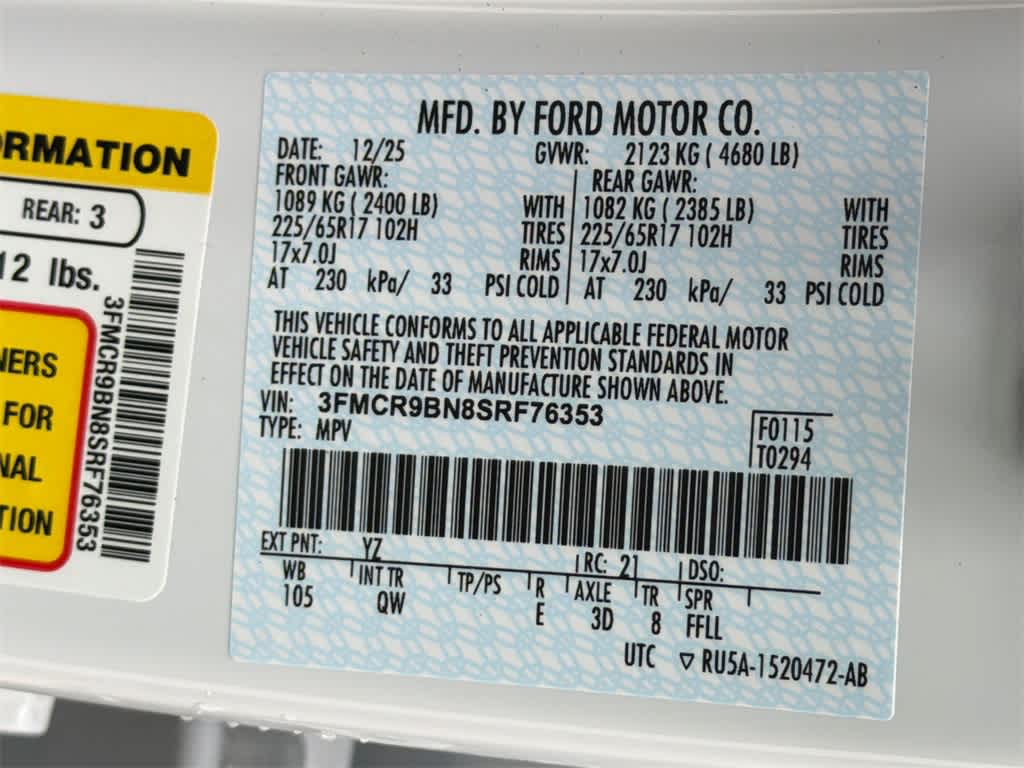 Bronco Sport Big Bend is nicely equipped with Black Diamond Off-Road Package (110V/400W AC Power Outlet, 2nd Row Carpeted Seatback, Auxiliary Switches & Wiring, Brush Guard, Cargo Management System (Shelf/Divider/Table), Cargo Mat, Class II Trailer Tow Pack w/Trailer Sway Control, Fender Tie Downs, Front & Rear Black Bumpers, Interior Grab Handle, Recovery Hooks, and Wheels: 17 Carbonized Gray Painted Aluminum), Convenience Package (Front Driver/Passenger Seat Back Map Pockets, Heated 8-Way Power Drivers Seat, LED Fog Lamps, Premium Wrapped Steering Wheel, and Universal Garage Door Opener (UGDO)), Equipment Group 200A, 4-Wheel Disc Brakes, 6 Speakers, ABS brakes, Air Conditioning, Alloy wheels, AM/FM radio: SiriusXM, AM/FM Stereo, Auto High-beam Headlights, Automatic temperature control, Brake assist, Cloth w/Easy-to-Clean Front Bucket Seats, Compass, Delay-off headlights, Driver door bin, Driver vanity mirror, Dual front impact airbags, Dual front side impact airbags, Electronic Stability Control, Emergency communication system: SYNC 4 911 Assist, Four wheel independent suspension, Front anti-roll bar, Front Bucket Seats, Front Center Armrest, Front reading lights, Fully automatic headlights, Heated door mirrors, Illuminated entry, Knee airbag, Low tire pressure warning, Occupant sensing airbag, Outside temperature display, Overhead airbag, Overhead console, Panic alarm, Passenger door bin, Passenger vanity mirror, Power door mirrors, Power steering, Power windows, Radio data system, Rear anti-roll bar, Rear Parking Sensors, Rear reading lights, Rear seat center armrest, Rear window defroster, Rear window wiper, Remote keyless entry, Security system, SiriusXM, Speed control, Speed-sensing steering, Speed-Sensitive Wipers, Split folding rear seat, Steering wheel mounted audio controls, SYNC 4 w/Enhanced Voice Recognition, Tachometer, Telescoping steering wheel, Tilt steering wheel, Traction control, Trip computer, Variably intermittent wipers, and Wheels: 17 Carbonized Gray-Painted Aluminum. Price includes: $1000 - SUV Spike Retail Bonus Cash. Exp. 02/16/2026 $2000 - Retail Customer Cash. Exp. 03/31/2026