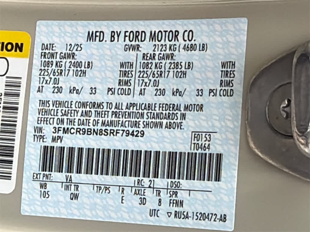 Bronco Sport Big Bend is nicely equipped with Equipment Group 200A, 4-Wheel Disc Brakes, 6 Speakers, ABS brakes, Air Conditioning, Alloy wheels, AM/FM radio: SiriusXM, AM/FM Stereo, Auto High-beam Headlights, Automatic temperature control, Brake assist, Cloth w/Easy-to-Clean Front Bucket Seats, Compass, Delay-off headlights, Driver door bin, Driver vanity mirror, Dual front impact airbags, Dual front side impact airbags, Electronic Stability Control, Emergency communication system: SYNC 4 911 Assist, Four wheel independent suspension, Front anti-roll bar, Front Bucket Seats, Front Center Armrest, Front reading lights, Fully automatic headlights, Heated door mirrors, Illuminated entry, Knee airbag, Low tire pressure warning, Occupant sensing airbag, Outside temperature display, Overhead airbag, Overhead console, Panic alarm, Passenger door bin, Passenger vanity mirror, Power door mirrors, Power steering, Power windows, Radio data system, Rear anti-roll bar, Rear Parking Sensors, Rear reading lights, Rear seat center armrest, Rear window defroster, Rear window wiper, Remote keyless entry, Security system, SiriusXM, Speed control, Speed-sensing steering, Speed-Sensitive Wipers, Split folding rear seat, Steering wheel mounted audio controls, SYNC 4 w/Enhanced Voice Recognition, Tachometer, Telescoping steering wheel, Tilt steering wheel, Traction control, Trip computer, Variably intermittent wipers, Wheels: 17 Carbonized Gray Painted Aluminum, and Wheels: 17 Carbonized Gray-Painted Aluminum. Price includes: $2000 - Retail Customer Cash. Exp. 03/31/2026
