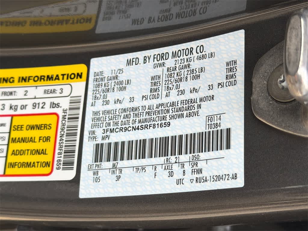 Bronco Sport Outer Banks is nicely equipped with Equipment Group 300A, Outer Banks Tech Package+ (B&O Sound System by Bang & Olufsen, Connected Navigation, and HD Radio), 360-Degree Camera w/Trail & Split View, 4-Wheel Disc Brakes, 6 Speakers, ABS brakes, Air Conditioning, Alloy wheels, AM/FM radio: SiriusXM, AM/FM Stereo, Auto High-beam Headlights, Auto-dimming Rear-View mirror, Automatic temperature control, Brake assist, Compass, Delay-off headlights, Driver door bin, Driver vanity mirror, Dual front impact airbags, Dual front side impact airbags, Electronic Stability Control, Emergency communication system: SYNC 4 911 Assist, Four wheel independent suspension, Front anti-roll bar, Front Bucket Seats, Front Center Armrest, Front Driver/Passenger Seat Back Map Pockets, Front dual zone A/C, Front fog lights, Front Parking Sensors, Front reading lights, Fully automatic headlights, Garage door transmitter, Heated door mirrors, Heated front seats, Heated steering wheel, Illuminated entry, Knee airbag, Low tire pressure warning, Memory seat, Occupant sensing airbag, Outside temperature display, Overhead airbag, Overhead console, Panic alarm, Passenger door bin, Passenger vanity mirror, Power door mirrors, Power driver seat, Power Moonroof, Power passenger seat, Power steering, Power windows, Premium Trimmed Front Bucket Seats w/Ebony/Roast, Radio data system, Rain sensing wipers, Rear anti-roll bar, Rear Parking Sensors, Rear reading lights, Rear seat center armrest, Rear window defroster, Rear window wiper, Remote keyless entry, Reverse Brake Assist, Security system, SiriusXM, Speed control, Speed-sensing steering, Speed-Sensitive Wipers, Split folding rear seat, Steering wheel mounted audio controls, SYNC 4 w/Enhanced Voice Recognition, Tachometer, Telescoping steering wheel, Tilt steering wheel, Traction control, Trip computer, Variably intermittent wipers, and Wheels: 18 Ebony Black-Painted Aluminum.