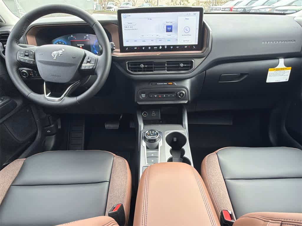 Bronco Sport Outer Banks is nicely equipped with Equipment Group 300A, 4-Wheel Disc Brakes, 6 Speakers, ABS brakes, Air Conditioning, Alloy wheels, AM/FM radio: SiriusXM, AM/FM Stereo, Auto High-beam Headlights, Auto-dimming Rear-View mirror, Automatic temperature control, Brake assist, Compass, Delay-off headlights, Driver door bin, Driver vanity mirror, Dual front impact airbags, Dual front side impact airbags, Electronic Stability Control, Emergency communication system: SYNC 4 911 Assist, Four wheel independent suspension, Front anti-roll bar, Front Bucket Seats, Front Center Armrest, Front Driver/Passenger Seat Back Map Pockets, Front dual zone A/C, Front fog lights, Front reading lights, Fully automatic headlights, Garage door transmitter, Heated door mirrors, Heated front seats, Heated steering wheel, Illuminated entry, Knee airbag, Low tire pressure warning, Memory seat, Occupant sensing airbag, Outside temperature display, Overhead airbag, Overhead console, Panic alarm, Passenger door bin, Passenger vanity mirror, Power door mirrors, Power driver seat, Power passenger seat, Power steering, Power windows, Premium Trimmed Front Bucket Seats w/Ebony/Roast, Radio data system, Rain sensing wipers, Rear anti-roll bar, Rear Parking Sensors, Rear reading lights, Rear seat center armrest, Rear window defroster, Rear window wiper, Remote keyless entry, Security system, SiriusXM, Speed control, Speed-sensing steering, Speed-Sensitive Wipers, Split folding rear seat, Steering wheel mounted audio controls, SYNC 4 w/Enhanced Voice Recognition, Tachometer, Telescoping steering wheel, Tilt steering wheel, Traction control, Trip computer, Variably intermittent wipers, and Wheels: 18 Ebony Black-Painted Aluminum. Price includes: $2000 - Retail Customer Cash. Exp. 03/31/2026