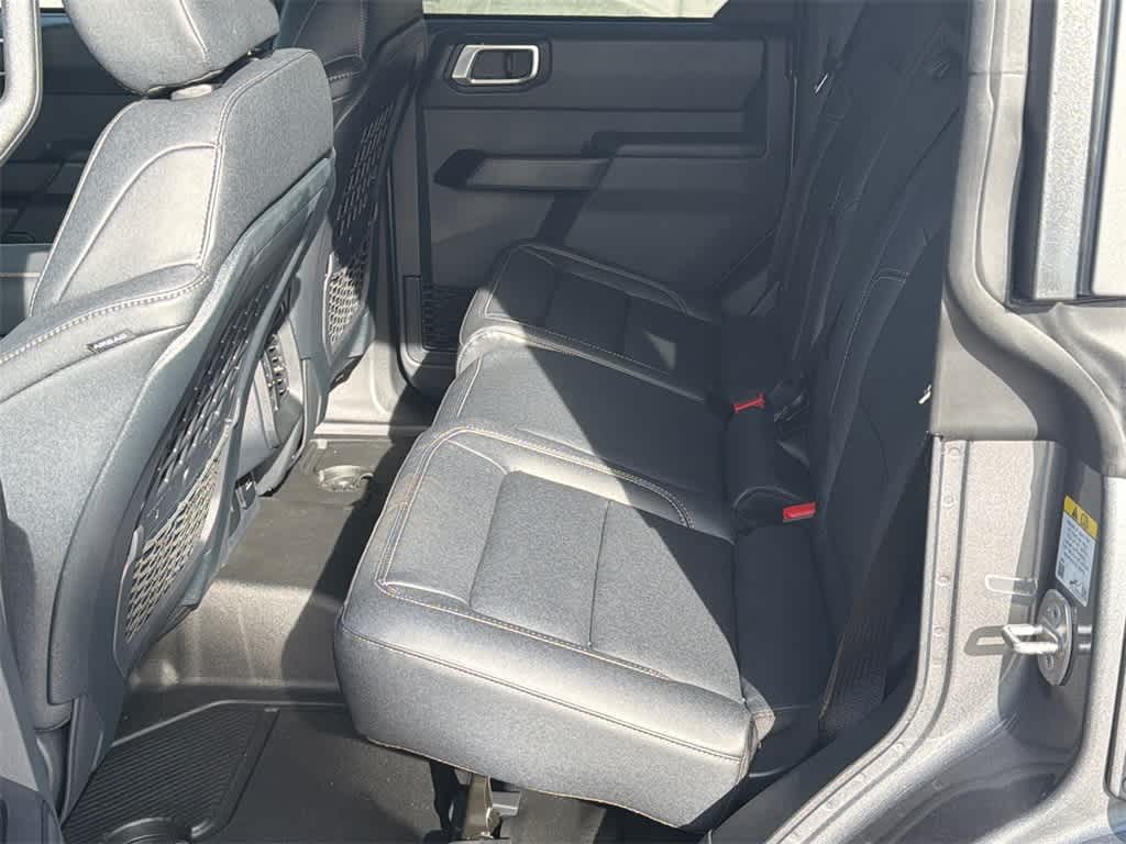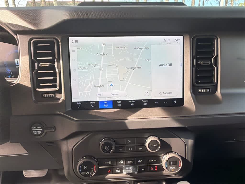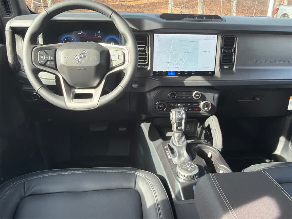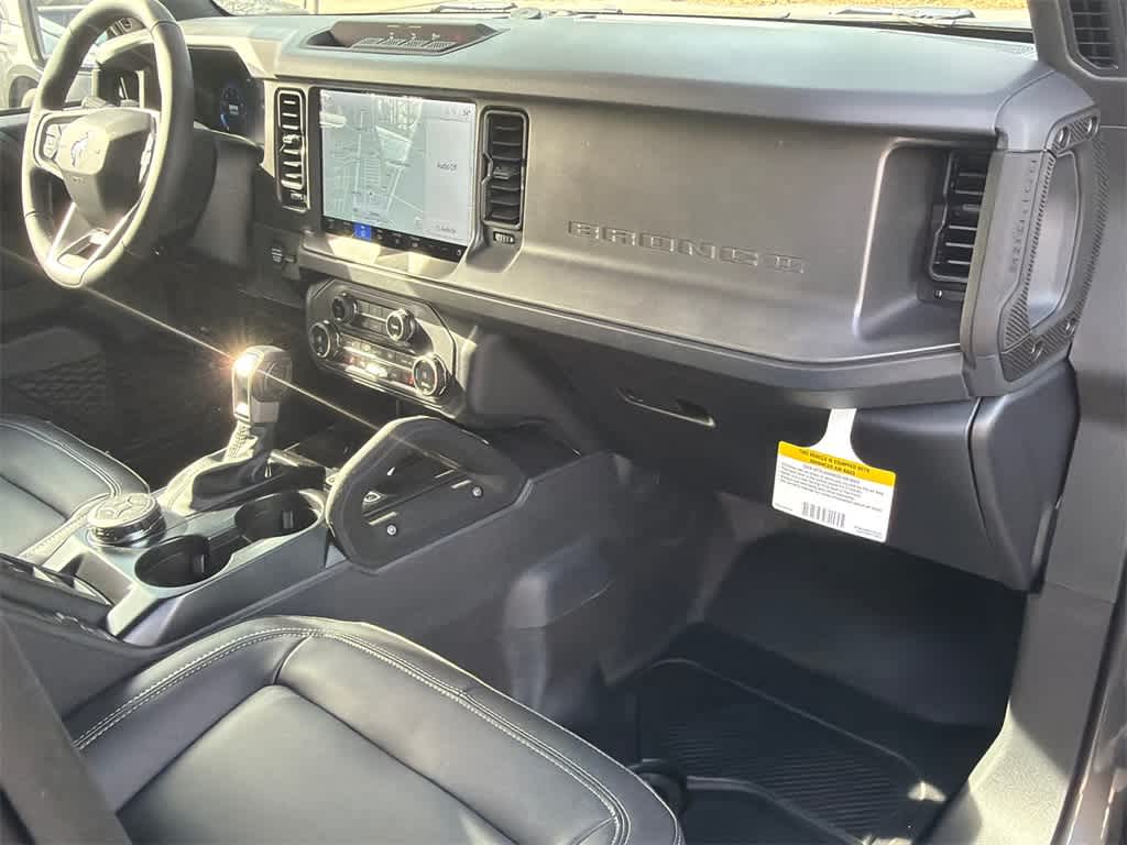 Bronco Big Bend is nicely equipped with Black Diamond Package (Auxiliary Switches, LED Fog Lamps, Powder Coated Steel Front & Rear Bumpers, Rock Rails, Washout Capable Rubberized Flooring, and Wheels: 17 Black High Gloss Painted Aluminum), Equipment Group 222A Mid Package (2-Door Intelligent Access w/Lock/Unlock, Ambient Footwell Lighting, Connected Navigation, Dr & Pass Illuminated Sliding Visor Vanity Mirrors, Dual Smart Charging USB Ports, Dual-Zone Electronic Automatic Temperature Control, Front Row Heated Seats, Power Outlet - Back Side of Center Floor Console, and Rear Parking Sensors), 4-Wheel Disc Brakes, 7 Speakers, ABS brakes, Air Conditioning, Alloy wheels, AM/FM radio: SiriusXM with 360L, AM/FM Stereo, Auto High-Beam Headlamps, Auto High-beam Headlights, BLIS Blind Spot Information System, Brake assist, Carbonized Gray Molded-In-Color Hard Top, Cloth Bucket Seats, Compass, Delay-off headlights, Driver door bin, Driver vanity mirror, Dual front impact airbags, Dual front side impact airbags, Electronic Stability Control, Emergency communication system: 911 Assist, Exterior Parking Camera Rear, Front anti-roll bar, Front Bucket Seats, Front Center Armrest, Front reading lights, Front wheel independent suspension, Fully automatic headlights, Hard Top Sound Deadening Headliner, Heated door mirrors, Illuminated entry, Integrated roll-over protection, Internet access capable: FordPass Connect, Lane-Keeping System, Leather Shift Knob, Low tire pressure warning, Occupant sensing airbag, Outside temperature display, Overhead airbag, Overhead console, Panic alarm, Passenger door bin, Passenger vanity mirror, Power door mirrors, Power steering, Power windows, Pre-Collision Assist w/Automatic Emergency Braking, Radio data system, Rear-View Camera, Rear-Window Defroster & Washer, Remote keyless entry, Security system, SiriusXM w/360L, Speed control, Split folding rear seat, Steering wheel mounted audio controls, SYNC 4, Tachometer, Telescoping steering wheel, Tilt steering wheel, Traction control, Trip computer, Variably intermittent wipers, and Wheels: 17 Carbonized Gray-Painted Aluminum.