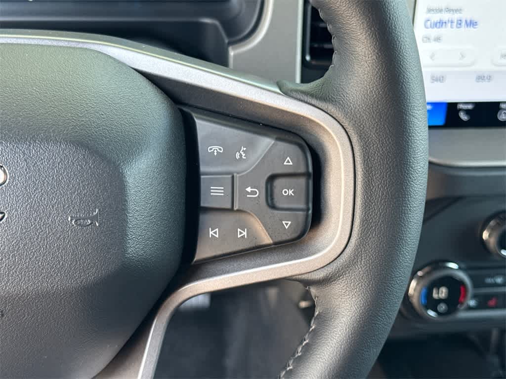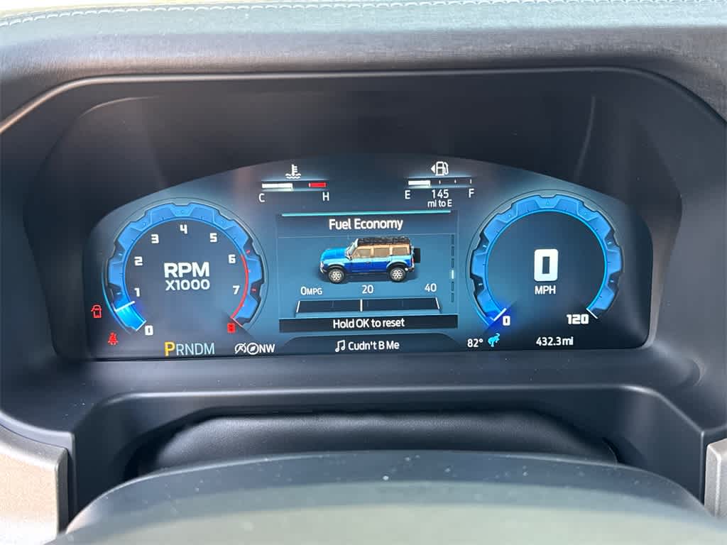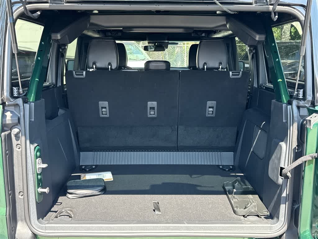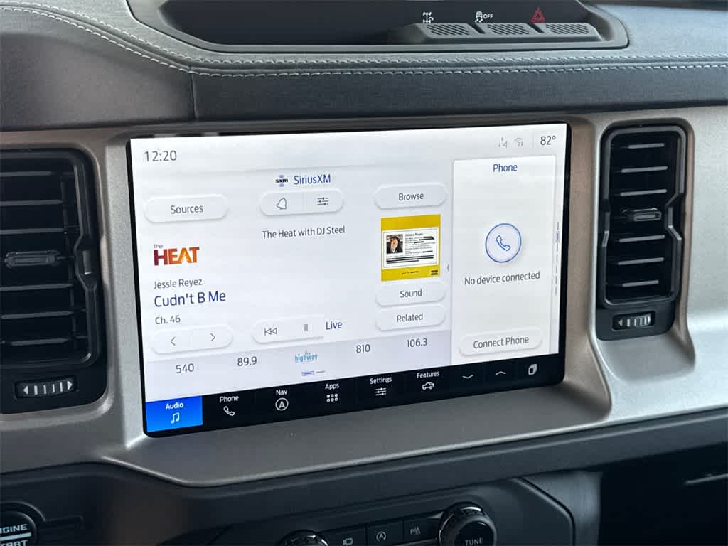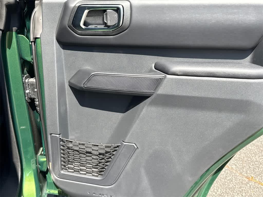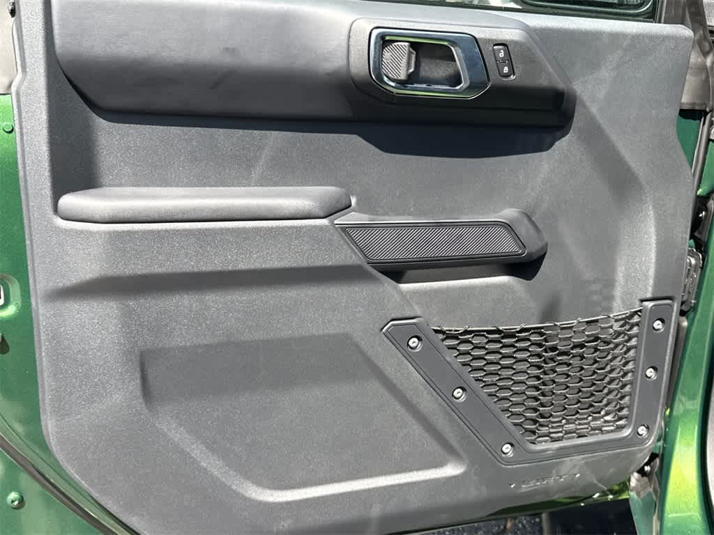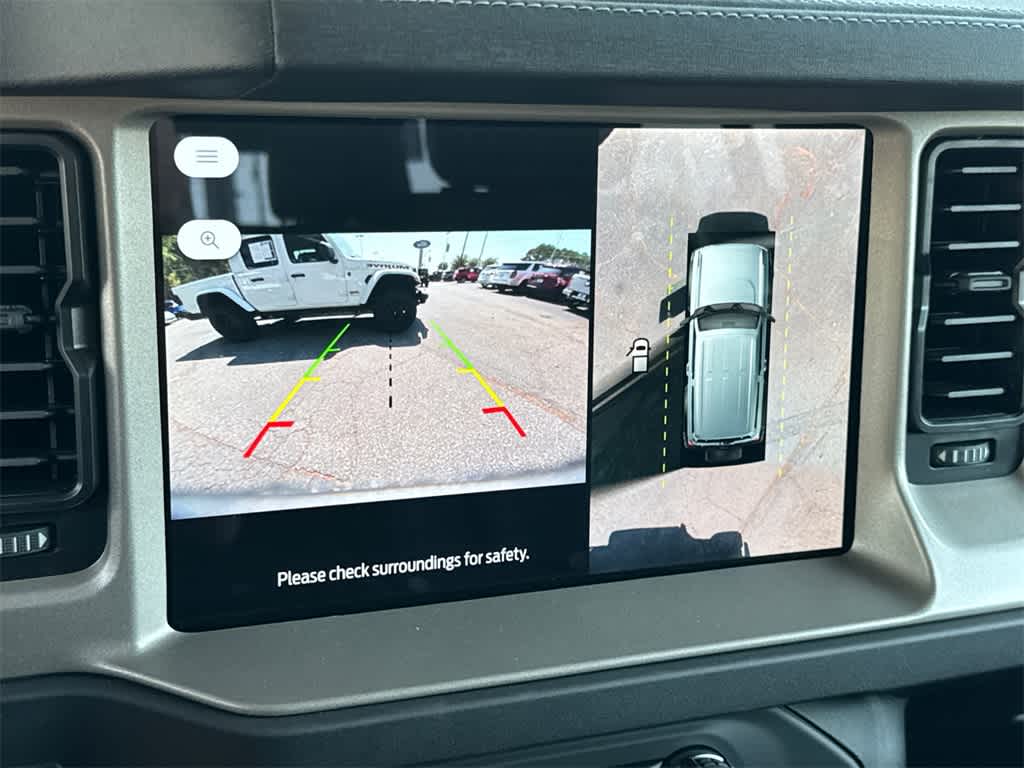 Bronco Outer Banks Advanced is nicely equipped with 18 Bright Machined Aluminum Wheels, 3.73 Axle Ratio, 4-Wheel Disc Brakes, 7 Speakers, ABS brakes, Air Conditioning, Alloy wheels, AM/FM radio: SiriusXM with 360L, AM/FM Stereo, Auto High-beam Headlights, Auto-dimming Rear-View mirror, Automatic temperature control, Brake assist, Compass, Connected Navigation, Delay-off headlights, Driver door bin, Driver vanity mirror, Dual front impact airbags, Dual front side impact airbags, Electronic Stability Control, Emergency communication system: 911 Assist, Exterior Parking Camera Rear, Front anti-roll bar, Front Bucket Seats, Front Center Armrest, Front dual zone A/C, Front fog lights, Front reading lights, Front wheel independent suspension, Fully automatic headlights, Heated door mirrors, Heated front seats, Heated Leather-Trimmed/Vinyl Bucket Seats, Heated steering wheel, Illuminated entry, Integrated roll-over protection, Leather Shift Knob, Low tire pressure warning, Navigation system: Connected Navigation, Occupant sensing airbag, Outside temperature display, Overhead airbag, Overhead console, Panic alarm, Passenger door bin, Passenger vanity mirror, Power door mirrors, Power driver seat, Power passenger seat, Power steering, Power windows, Radio data system, Rear seat center armrest, Remote keyless entry, Security system, SiriusXM w/360L, Speed control, Split folding rear seat, Steering wheel mounted audio controls, SYNC 4, Tachometer, Telescoping steering wheel, Tilt steering wheel, Traction control, Trip computer, Variably intermittent wipers, and Voltmeter.