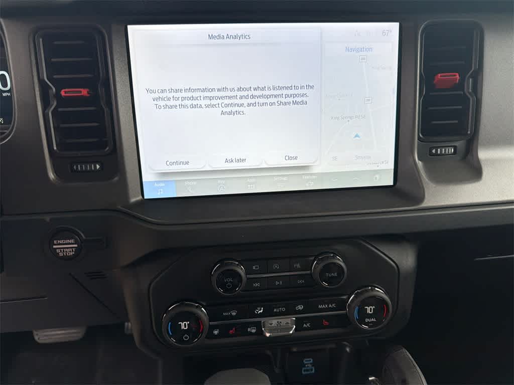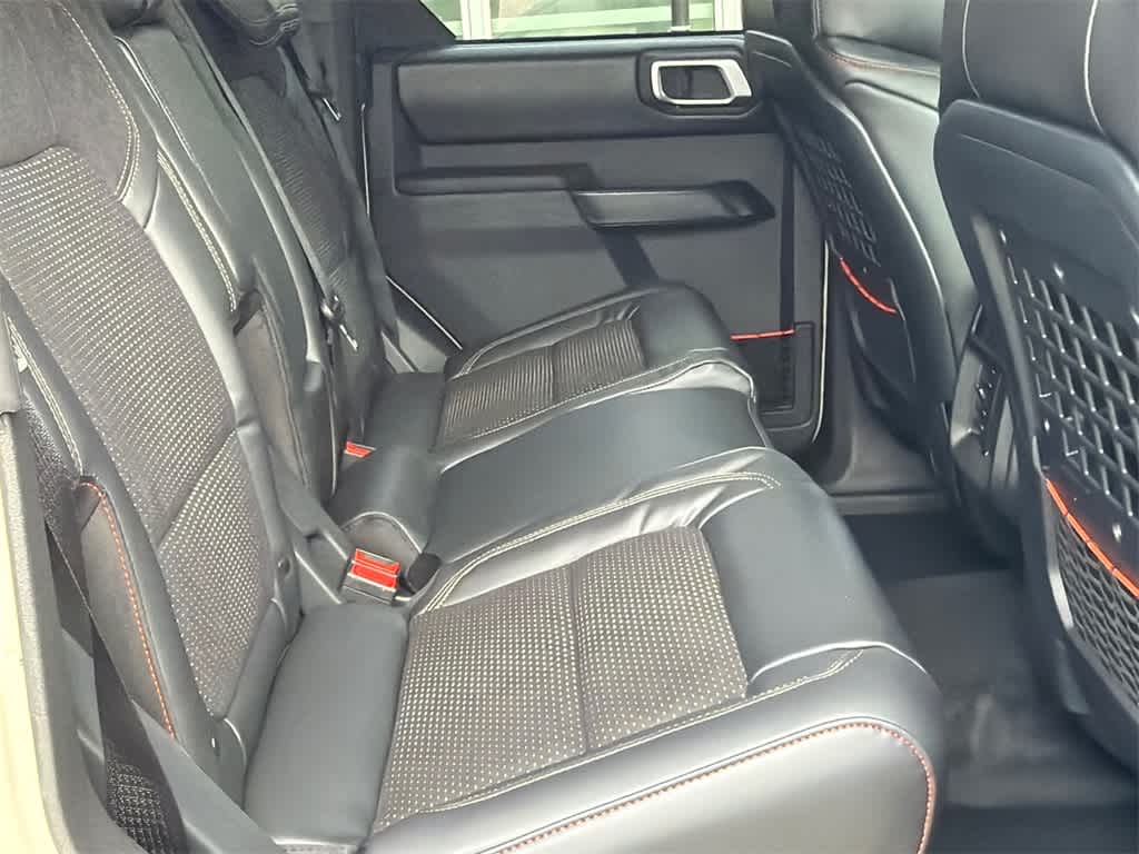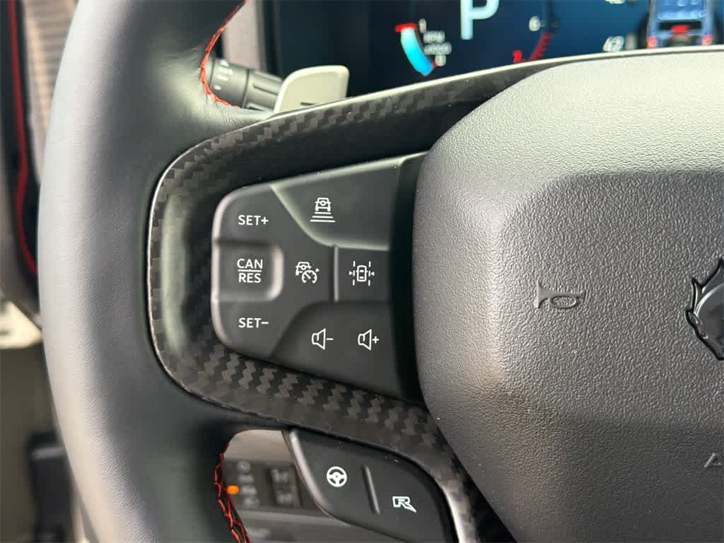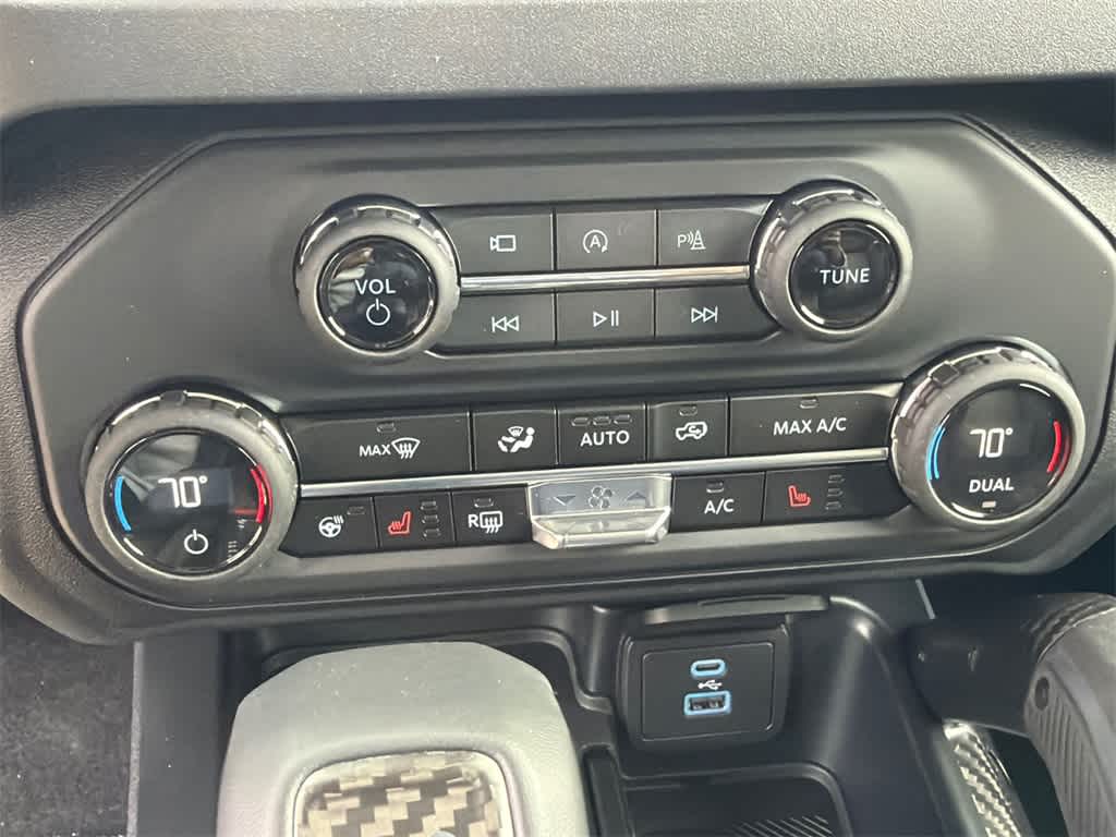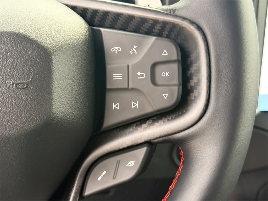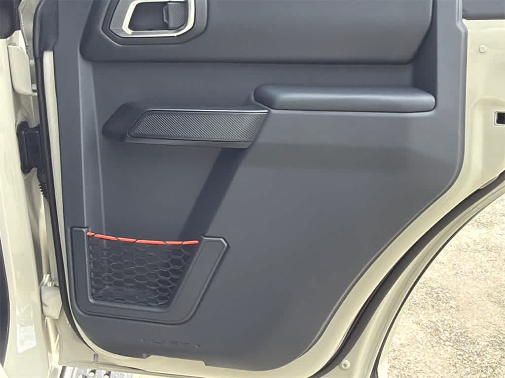 Bronco Raptor is nicely equipped with 12 Speakers, 4-Wheel Disc Brakes, ABS brakes, Air Conditioning, Alloy wheels, AM/FM radio: SiriusXM with 360L, Auto High-beam Headlights, Auto-dimming Rear-View mirror, Automatic temperature control, Brake assist, Compass, Connected Navigation, Convertible HardTop, Convertible roof lining, Delay-off headlights, Driver door bin, Driver vanity mirror, Dual front impact airbags, Dual front side impact airbags, Electronic Stability Control, Emergency communication system: 911 Assist, Exterior Parking Camera Rear, Front anti-roll bar, Front Bucket Seats, Front Center Armrest, Front dual zone A/C, Front fog lights, Front reading lights, Front wheel independent suspension, Fully automatic headlights, Garage door transmitter, Glass rear window, Heated door mirrors, Heated front seats, Heated steering wheel, Illuminated entry, Integrated roll-over protection, Leather Shift Knob, Low tire pressure warning, Marine Grade Vinyl Bucket Seats, Navigation system: Connected Navigation, Occupant sensing airbag, Outside temperature display, Overhead airbag, Overhead console, Panic alarm, Passenger door bin, Passenger vanity mirror, Power door mirrors, Power steering, Power windows, Radio data system, Radio: B&O Sound System by Bang & Olufsen, Rear anti-roll bar, Rear seat center armrest, Rear window defroster, Rear window wiper, Remote keyless entry, Security system, SiriusXM w/360L, Speed control, Split folding rear seat, Steering wheel mounted audio controls, SYNC 4, Tachometer, Telescoping steering wheel, Tilt steering wheel, Traction control, Trip computer, Turn signal indicator mirrors, Variably intermittent wipers, Voltmeter, and Wheels: 17 Black High Gloss-Painted Aluminum.