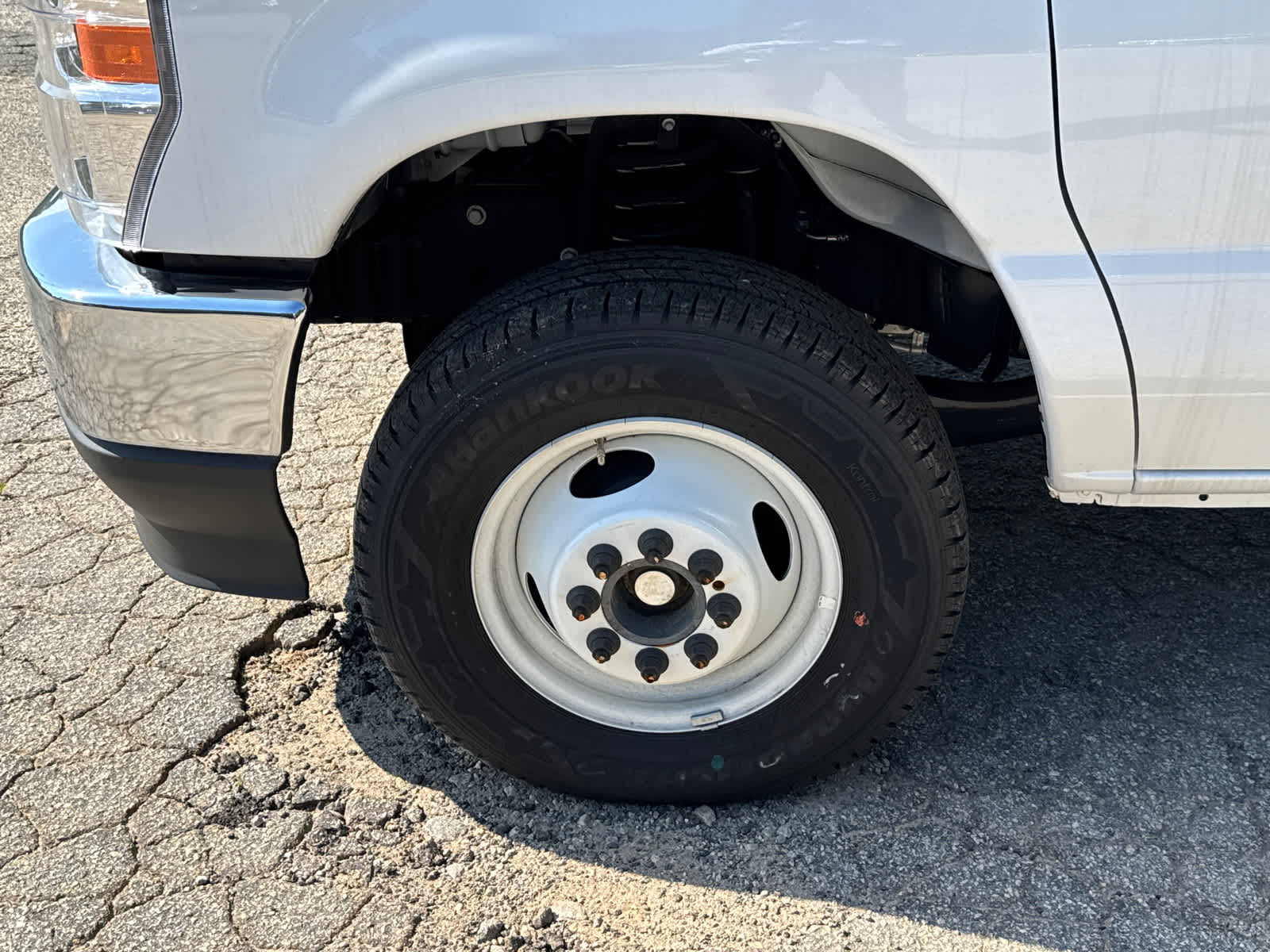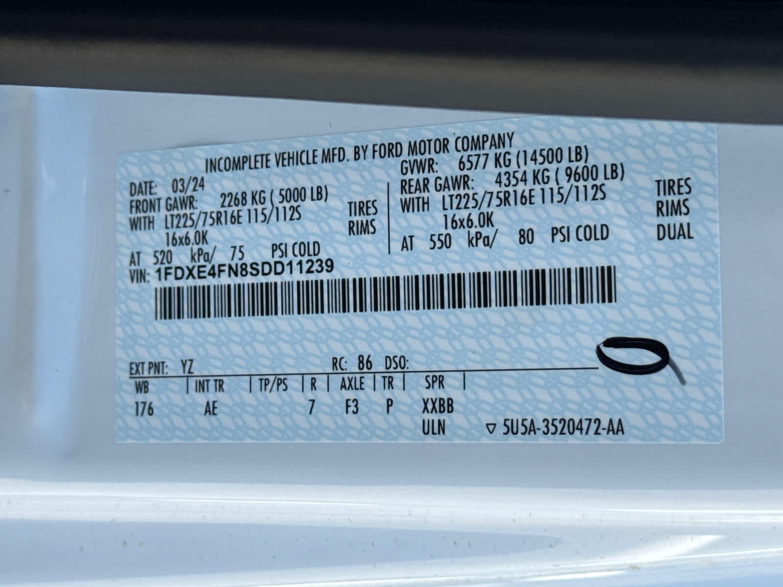 E-450SD is nicely equipped with GVWR: 14,500 lb Payload Package, High Series Exterior Upgrade Package (Chrome Grille and Front Chrome Bumper), Order Code 782A (Auxiliary Fuel Port), 110V Power Inverter, 16 x 6 White Painted Steel Wheels, 2 Speakers, 4-Wheel Disc Brakes, 4.56 Axle Ratio, 4.56 Axle Ratio w/Limited-Slip, 40-Gallon Fuel Tank, ABS brakes, Air Conditioning, AM/FM radio, B-Pillar Trim Kit, Cruise Control, Day/Night Interior Rear-View Mirror, Driver door bin, Drivers Seat Mounted Armrest, Dual front impact airbags, Dual High Back Buckets, Dual rear wheels, Electronic Stability Control, Front anti-roll bar, Front Bucket Seats, Front wheel independent suspension, Fully automatic headlights, License Plate Bracket, Passenger door bin, Passenger seat mounted armrest, Power Equipment Group, Power steering, Rear anti-roll bar, Remote Keyless Entry, Tachometer, Telescoping steering wheel, Tilt steering wheel, Traction control, Variably intermittent wipers, Vinyl Bucket Seats, Vinyl Floor Covering, and Voltmeter. Price includes dealer added accessories.