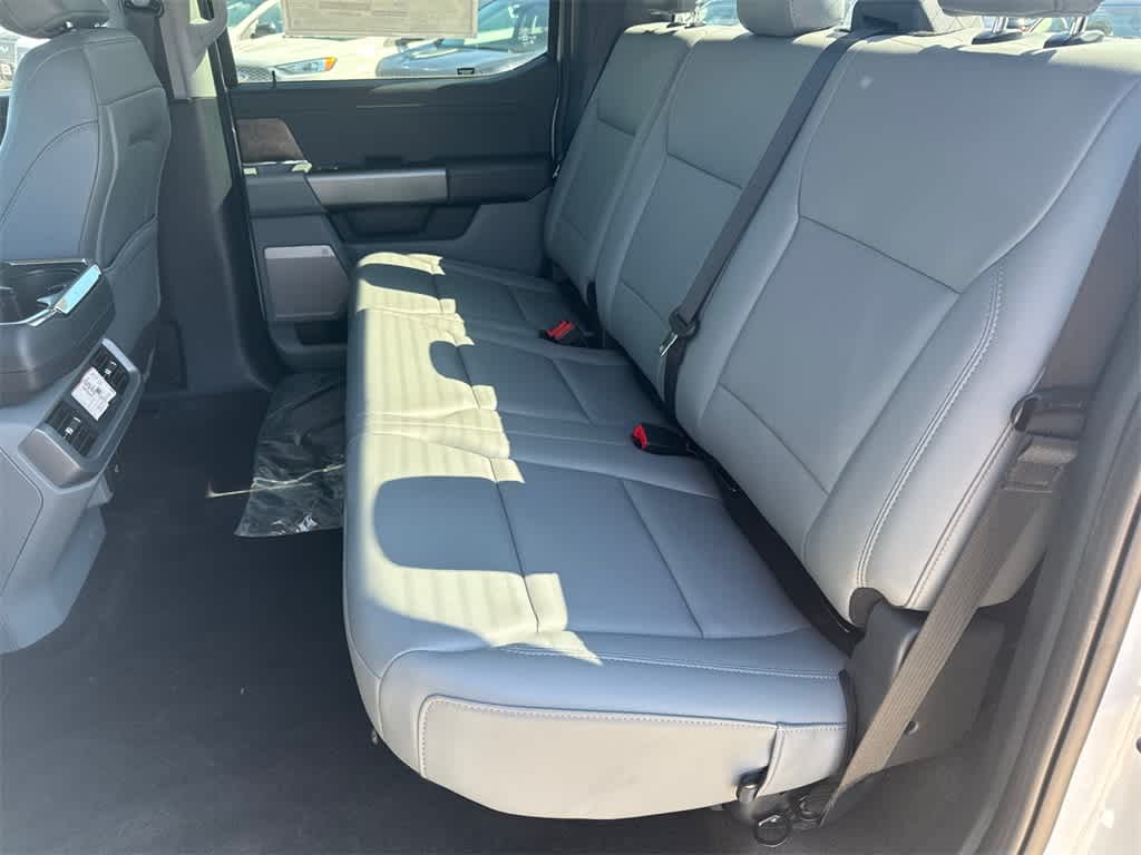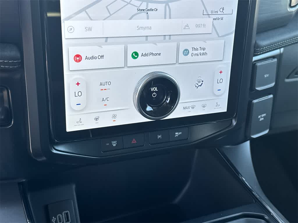 F-150 Lightning Flash is nicely equipped with Equipment Group 312A Standard, 4-Wheel Disc Brakes, 8 Speakers, ABS brakes, ActiveX Trimmed Heated Front Seats, Adjustable pedals, Air Conditioning, Alloy wheels, Auto High-beam Headlights, Auto-dimming Rear-View mirror, Automatic temperature control, BlueCruise Equipped (1-Year Plan), Brake assist, Bumpers: body-color, Compass, Delay-off headlights, Driver door bin, Driver vanity mirror, Dual front impact airbags, Dual front side impact airbags, Electronic Stability Control, Emergency communication system: SYNC 4 911 Assist, Four wheel independent suspension, Front anti-roll bar, Front Bucket Seats, Front Center Armrest, Front dual zone A/C, Front License Plate Bracket, Front reading lights, Fully automatic headlights, Heated door mirrors, Heated front seats, Heated steering wheel, Illuminated entry, Knee airbag, Low tire pressure warning, Mobile Power Cord (120/240V), Navigation system: Connected Navigation, Occupant sensing airbag, Outside temperature display, Overhead airbag, Overhead console, Panic alarm, Passenger door bin, Passenger vanity mirror, Power door mirrors, Power driver seat, Power passenger seat, Power steering, Power windows, Pro Power Onboard - 9.6 kW Exportable Power, Radio data system, Radio: B&O Sound System by Bang & Olufsen, Rear anti-roll bar, Rear reading lights, Rear step bumper, Rear window defroster, Remote keyless entry, Security system, Speed control, Speed-sensing steering, Split folding rear seat, Steering wheel mounted audio controls, SYNC 4A w/Enhanced Voice Recognition, Tailgate Step w/Tailgate Work Surface, Telescoping steering wheel, Tilt steering wheel, Traction control, Trip computer, Turn signal indicator mirrors, Variably intermittent wipers, and Wheels: 20 Alloy Dark Carbonized Gray.