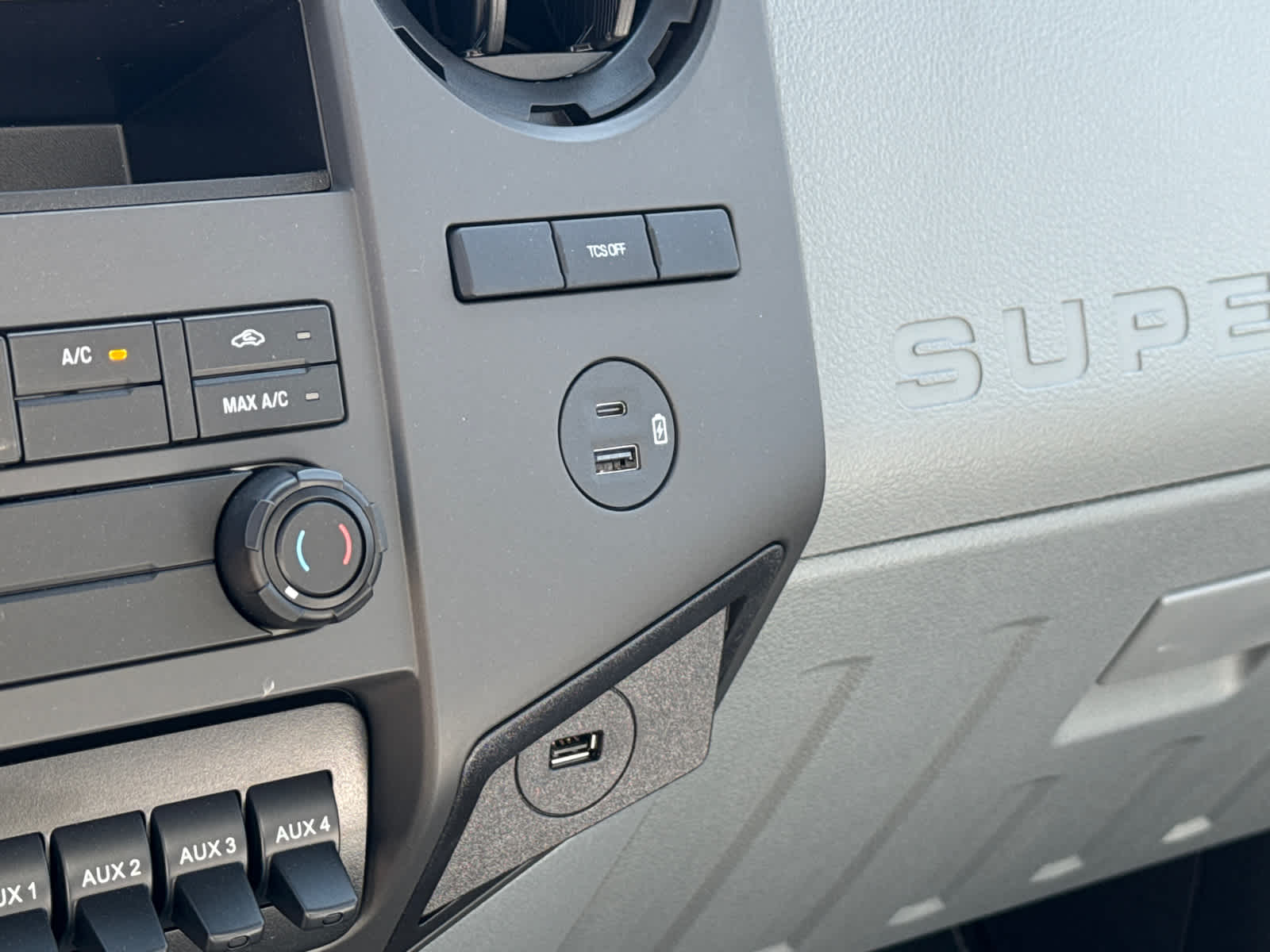 F-750SD Base is nicely equipped with Driver Assist Technology Package. Hydraulic Brake, Preferred Equipment Package 600A (Body Builder Wiring - At Back of Cab, Combined, Intelligent Oil Life Monitor, Lights - Roof Marker/Clearance - Amber Lenses, 5 Lights, and Steering Column - Tilt / Telescoping), 110 A/C Outlet - in Lower Center Finish Panel, 2 Speakers, 7.17 Axle Ratio, ABS brakes, Air Conditioning, AM/FM radio, Delay-off headlights, Drivers Seat Mounted Armrest, Dual rear wheels, Electronic Stability Control, Four Body Builder Switches - Mounted in Center Instrument Panel, Front reading lights, Front Stabilizer Bar, Fully automatic headlights, Heated door mirrors, Jump Start Stud - Remote Mounted, Passenger seat mounted armrest, Passenger vanity mirror, Power steering, SecuriLock Passive Anti-Theft System, Shock Absorbers, Rear - Double Acting, Speed control, Speed-Sensitive Wipers, Steering wheel mounted audio controls, Tachometer, Telescoping steering wheel, Tilt steering wheel, Traction control, Trip computer, and Variably intermittent wipers. Price includes dealer added accessories.