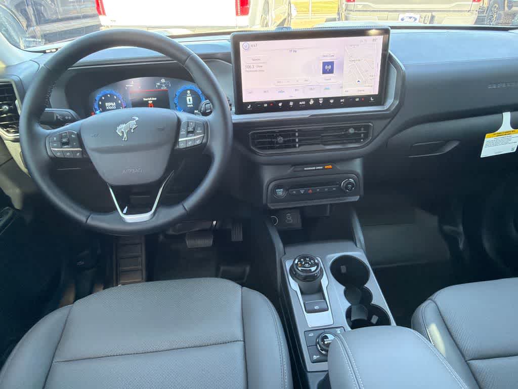 Bronco Sport Badlands is nicely equipped with Badlands Tech Package (Connected Navigation (1-Year Included), Noise Reduction Module, and Radio: HD w/B&O Sound System by Bang & Olufsen), Equipment Group 400A Standard Package (AM/FM Stereo, Leather-Trimmed Heated Front Sport Contour Bucket Seats, SiriusXM with 360L, SYNC 4 with Enhanced Voice Recognition, and Wheels: 17 Matte Black-Painted Aluminum), Ford Connectivity Package (1-Year Included), Ford Connectivity Package (one-Time Purchase - 7 Years), Internet access capable: 5G Modem - Ford Connectivity Package, 4-Wheel Disc Brakes, 6 Speakers, ABS brakes, Air Conditioning, Alloy wheels, AM/FM radio: SiriusXM with 360L, Apple CarPlay/Android Auto, Auto High-beam Headlights, Auto-dimming Rear-View mirror, Automatic temperature control, Brake assist, Compass, Delay-off headlights, Driver door bin, Driver vanity mirror, Dual front impact airbags, Dual front side impact airbags, Electronic Stability Control, Emergency communication system: SYNC 4 911 Assist, Exterior Parking Camera Rear, Four wheel independent suspension, Front anti-roll bar, Front Bucket Seats, Front Center Armrest, Front fog lights, Front reading lights, Fully automatic headlights, Heated door mirrors, Heated front seats, Heated steering wheel, Illuminated entry, Knee airbag, Low tire pressure warning, Memory seat, Occupant sensing airbag, Outside temperature display, Overhead airbag, Overhead console, Panic alarm, Passenger door bin, Passenger vanity mirror, Power door mirrors, Power driver seat, Power passenger seat, Power steering, Power windows, Radio data system, Rear anti-roll bar, Rear reading lights, Rear seat center armrest, Rear window defroster, Rear window wiper, Remote keyless entry, Security system, Speed control, Speed-sensing steering, Speed-Sensitive Wipers, Split folding rear seat, Steering wheel mounted audio controls, Tachometer, Telescoping steering wheel, Tilt steering wheel, Traction control, Trip computer, and Variably intermittent wipers.
