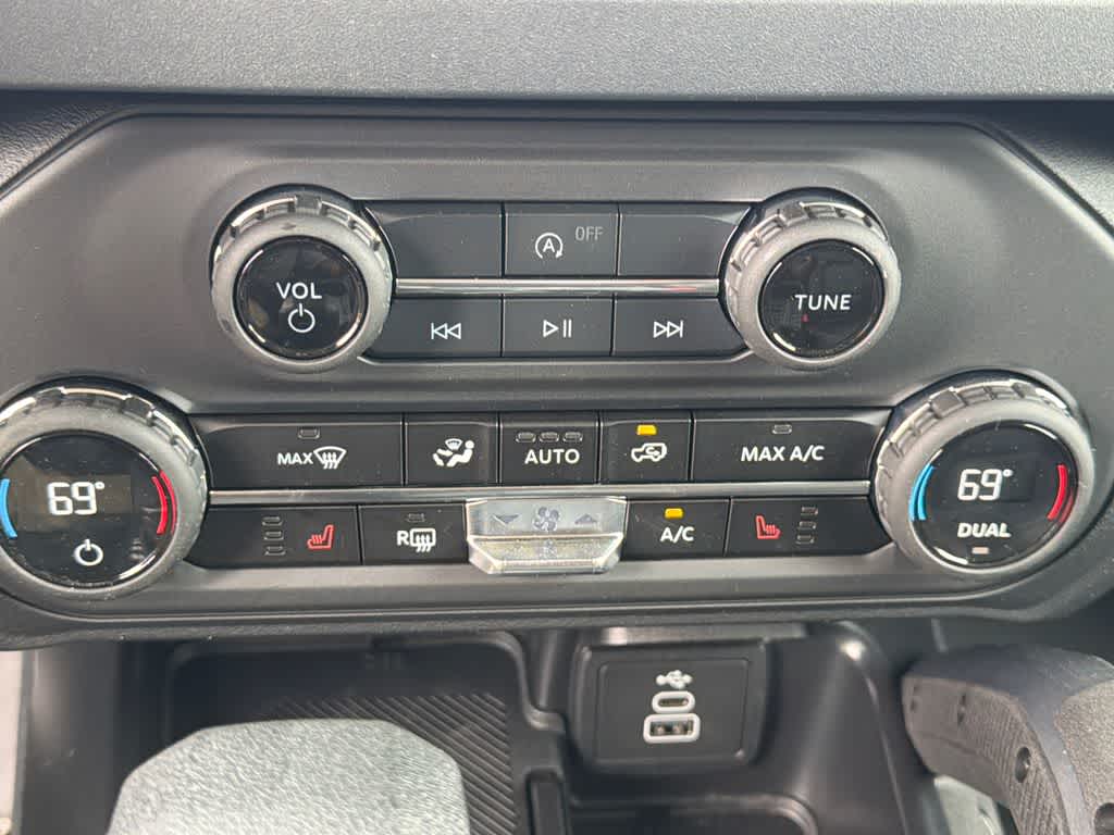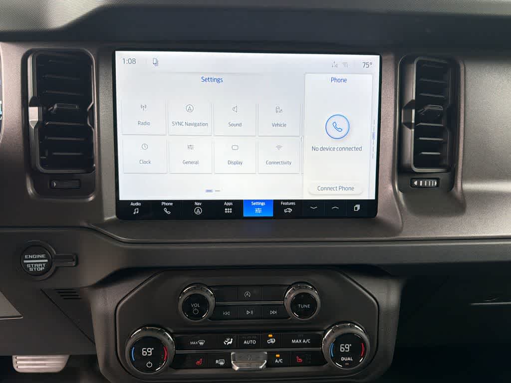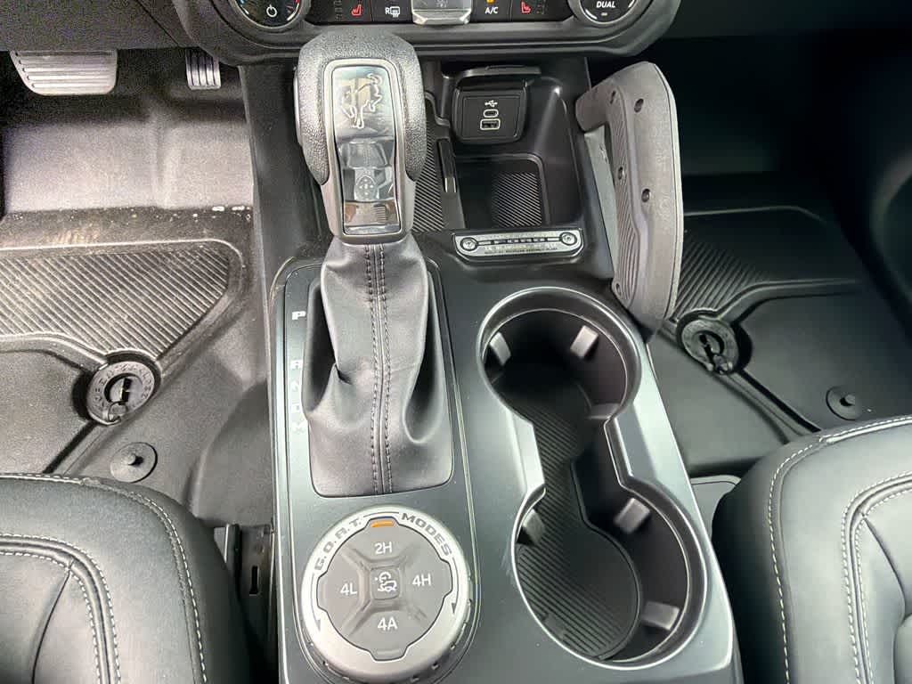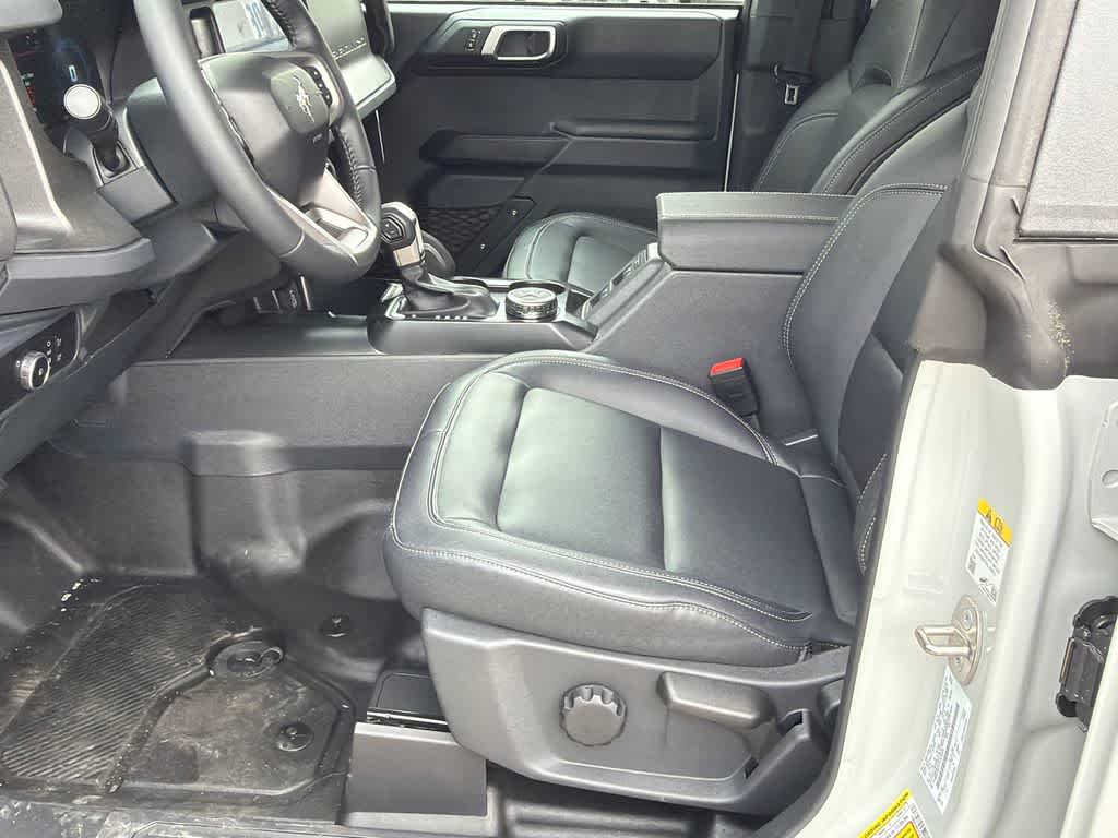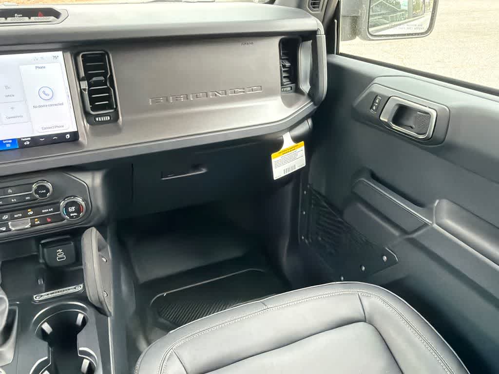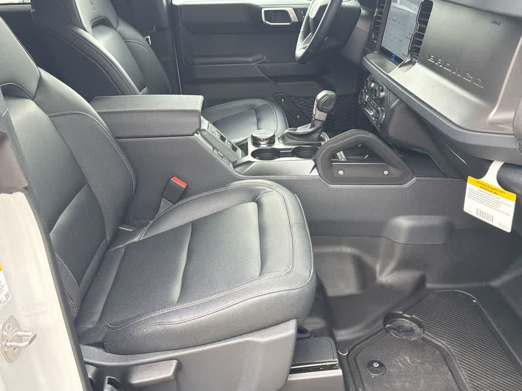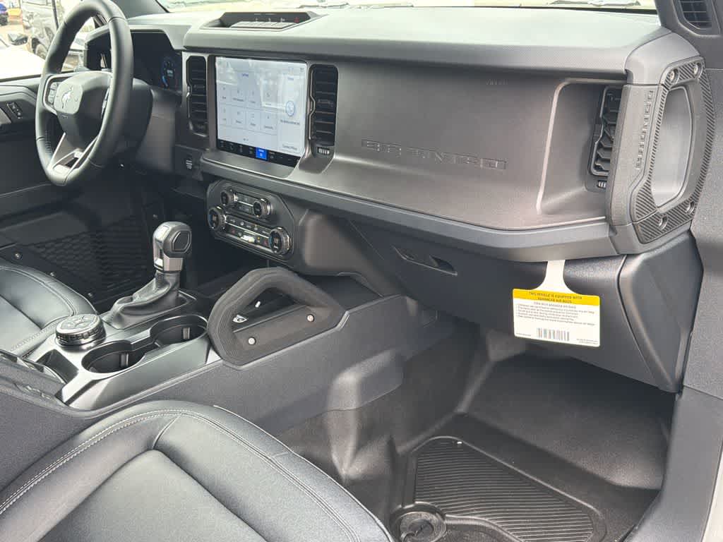Bronco Big Bend is nicely equipped with Black Appearance Package (Black Molded-in-Color Door Handles, Black Molded-in-Color Fender Flares, Black Molded-in-Color Sideview Mirror Caps, and Black-Painted Molded-in-Color Grille), Black Diamond Package (Auxiliary Switches, LED Fog Lamps, Powder Coated Steel Front and Rear Bumpers, Rock Rails, Washout Capable Rubberized Flooring, and Wheels: 17 Black High Gloss-Painted Steel), Equipment Group 222A Mid Package (2-Door Intelligent Access with Lock/Unlock, AM/FM Stereo, Ambient Footwell Lighting, Cloth Bucket Seats, Connected Navigation, Driver and Front Passenger Illuminated Sliding Visor Vanity Mirrors, Dual Smart Charging USB Ports, Dual-Zone Electronic Automatic Temperature Control, Front Row Heated Seats, Pro Power Onboard - 400W, Rear Parking Sensors, SiriusXM with 360L, SYNC 4, and Wheels: 17 Carbonized Gray-Painted Aluminum), Ford Connectivity Package (1-Year Included), 4-Wheel Disc Brakes, 7 Speakers, ABS brakes, Air Conditioning, Alloy wheels, AM/FM radio: SiriusXM with 360L, Auto High-Beam Headlamps, Auto High-beam Headlights, BLIS Blind Spot Information System, Brake assist, Compass, Delay-off headlights, Driver door bin, Driver vanity mirror, Dual front impact airbags, Dual front side impact airbags, Electronic Stability Control, Emergency communication system: 911 Assist, Exterior Parking Camera Rear, Front anti-roll bar, Front Bucket Seats, Front Center Armrest, Front reading lights, Front wheel independent suspension, Fully automatic headlights, Hard Top Sound Deadening Headliner, Heated door mirrors, Illuminated entry, Integrated roll-over protection, Lane-Keeping System, Low tire pressure warning, Occupant sensing airbag, Outside temperature display, Overhead airbag, Overhead console, Panic alarm, Passenger door bin, Passenger vanity mirror, Power door mirrors, Power steering, Power windows, Pre-Collision Assist with Automatic Emergency Braking, Radio data system, Rear-View Camera, Rear-Window Defroster and Washer, Remote keyless entry, Security system, Shadow Black Painted Hard Top, Speed control, Split folding rear seat, Steering wheel mounted audio controls, Tachometer, Telescoping steering wheel, Tilt steering wheel, Traction control, Trip computer, and Variably intermittent wipers.