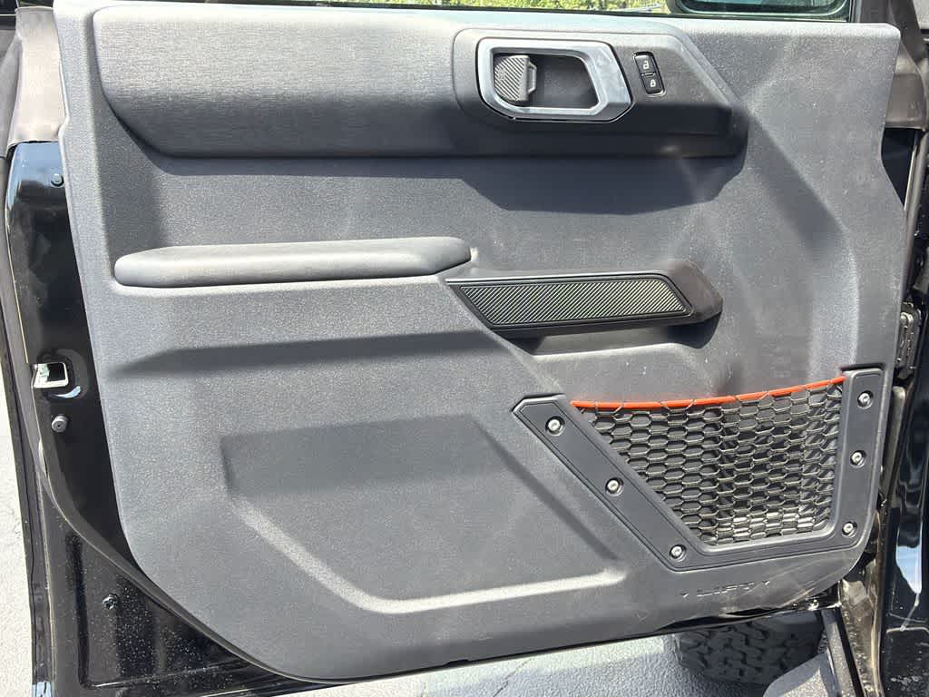 Bronco Raptor is nicely equipped with Ford Connectivity Package (1-Year Included), 12 Speakers, 4-Wheel Disc Brakes, ABS brakes, Air Conditioning, Alloy wheels, AM/FM radio: SiriusXM with 360L, Auto High-beam Headlights, Auto-dimming Rear-View mirror, Automatic temperature control, Brake assist, Compass, Connected Navigation, Convertible HardTop, Convertible roof lining, Delay-off headlights, Driver door bin, Driver vanity mirror, Dual front impact airbags, Dual front side impact airbags, Electronic Stability Control, Emergency communication system: 911 Assist, Exterior Parking Camera Rear, Front anti-roll bar, Front Bucket Seats, Front Center Armrest, Front dual zone A/C, Front fog lights, Front reading lights, Front wheel independent suspension, Fully automatic headlights, Glass rear window, Heated door mirrors, Heated front seats, Heated steering wheel, Illuminated entry, Integrated roll-over protection, Leather Shift Knob, Low tire pressure warning, Marine Grade Vinyl Bucket Seats, Navigation system: Connected Navigation, Occupant sensing airbag, Outside temperature display, Overhead airbag, Overhead console, Panic alarm, Passenger door bin, Passenger vanity mirror, Power door mirrors, Power steering, Power windows, Radio data system, Rear anti-roll bar, Rear seat center armrest, Rear window defroster, Rear window wiper, Remote keyless entry, Security system, SiriusXM with 360L, Speed control, Split folding rear seat, Steering wheel mounted audio controls, SYNC 4, Tachometer, Telescoping steering wheel, Tilt steering wheel, Traction control, Trip computer, Turn signal indicator mirrors, Variably intermittent wipers, Voltmeter, and Wheels: 17 Black High Gloss-Painted Aluminum.