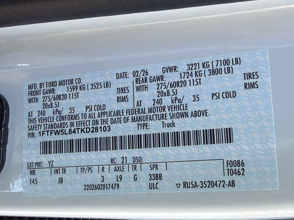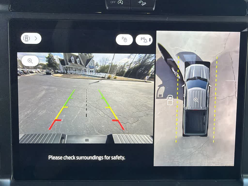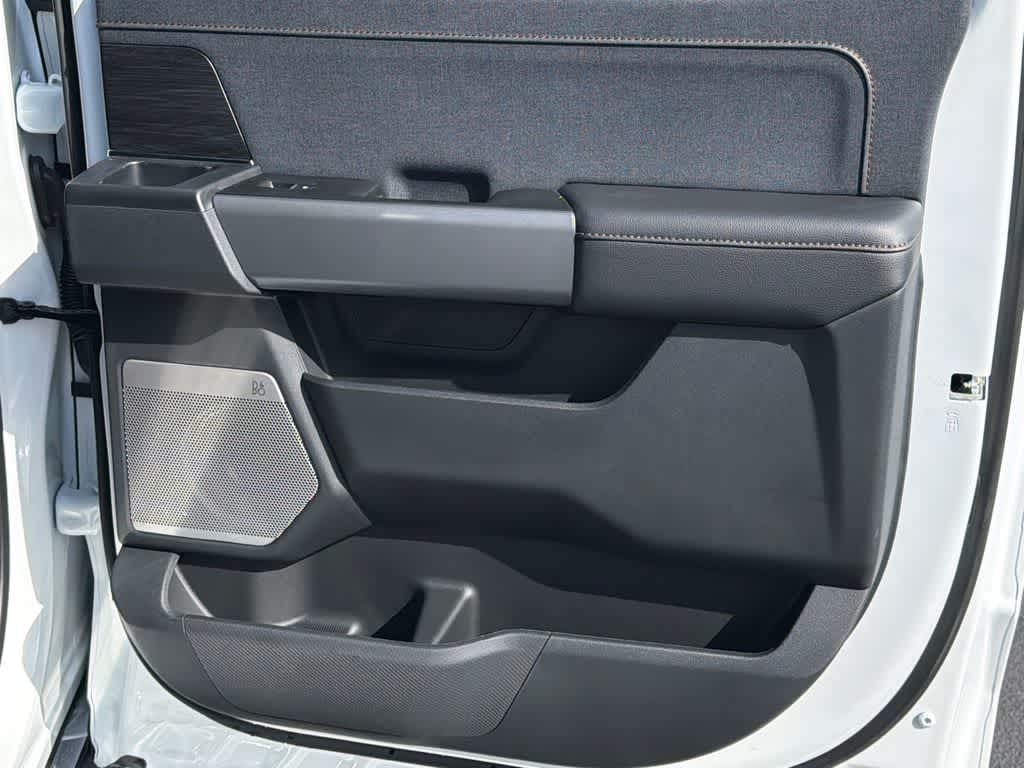 F-150 Lariat is nicely equipped with Equipment Group 501A Mid (ActiveX Trimmed Bucket Seats, Illuminated Driver and Passenger Visors, Power-Adjustable Pedals with Memory, Power-Sliding Rear Window, Radio: B&O Sound System by Bang and Olufsen, SYNC 4 with Enhanced Voice Recognition, and Wheels: 20 Chrome-Like PVD), Ford Connectivity Package (1-Year Included), FX4 Off-Road Package (4x4 FX4 Off-Road Bodyside Decal, Hill Descent Control, Monotube Rear Shocks, Off-Road Tuned Front Shock Absorbers, and Tray Style Floor Liner Without Carpet Mats), Internet access capable: 5G Modem - Ford Connectivity Package, Mobile Office Package (Console Worksurface, Partitioned Lockable Rear Storage, and Wireless Charging), Tow/Haul Package (Integrated Trailer Brake Controller), 4WD, 4-Wheel Disc Brakes, 8 Speakers, ABS brakes, Air Conditioning, Alloy wheels, AM/FM radio: SiriusXM with 360L, Auto High-beam Headlights, Auto-dimming door mirrors, Auto-dimming Rear-View mirror, Automatic temperature control, Brake assist, Bumpers: chrome, Chrome wheels, Compass, Delay-off headlights, Driver door bin, Driver vanity mirror, Drivers Side SecuriCode Keyless-Entry Keypad, Dual front impact airbags, Dual front side impact airbags, Electronic Stability Control, Emergency communication system: SYNC 4 911 Assist, Front anti-roll bar, Front Bucket Seats, Front Center Armrest, Front dual zone A/C, Front fog lights, Front License Plate Bracket, Front reading lights, Front wheel independent suspension, Fully automatic headlights, Garage door transmitter, Heated door mirrors, Heated front seats, Heated steering wheel, Illuminated entry, Low tire pressure warning, Memory seat, Navigation system: Connected Navigation, Occupant sensing airbag, Outside temperature display, Overhead airbag, Overhead console, Panic alarm, Passenger door bin, Passenger vanity mirror, Power door mirrors, Power driver seat, Power passenger seat, Power steering, Power windows, Radio data system, Rain sensing wipers, Rear reading lights, Rear seat center armrest, Rear step bumper, Rear window defroster, Remote keyless entry, Security system, Speed control, Split folding rear seat, Steering wheel mounted audio controls, Tachometer, Telescoping steering wheel, Tilt steering wheel, Tough Bed Spray-in Bedliner, Traction control, Trip computer, Turn signal indicator mirrors, Variably intermittent wipers, Ventilated front seats, and Wheels: 18 Chrome-Like PVD.