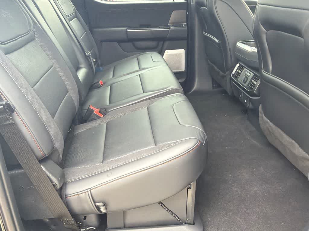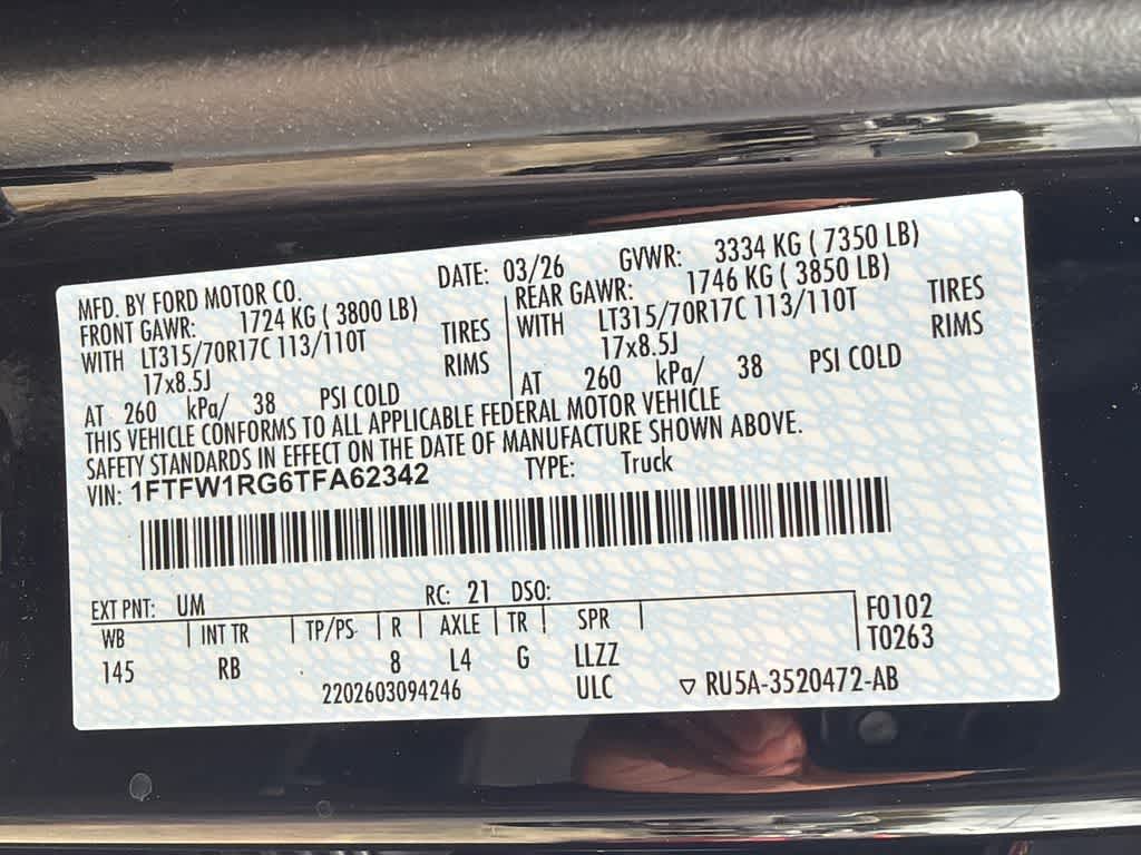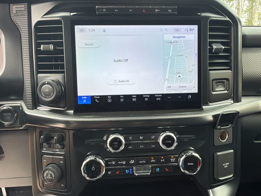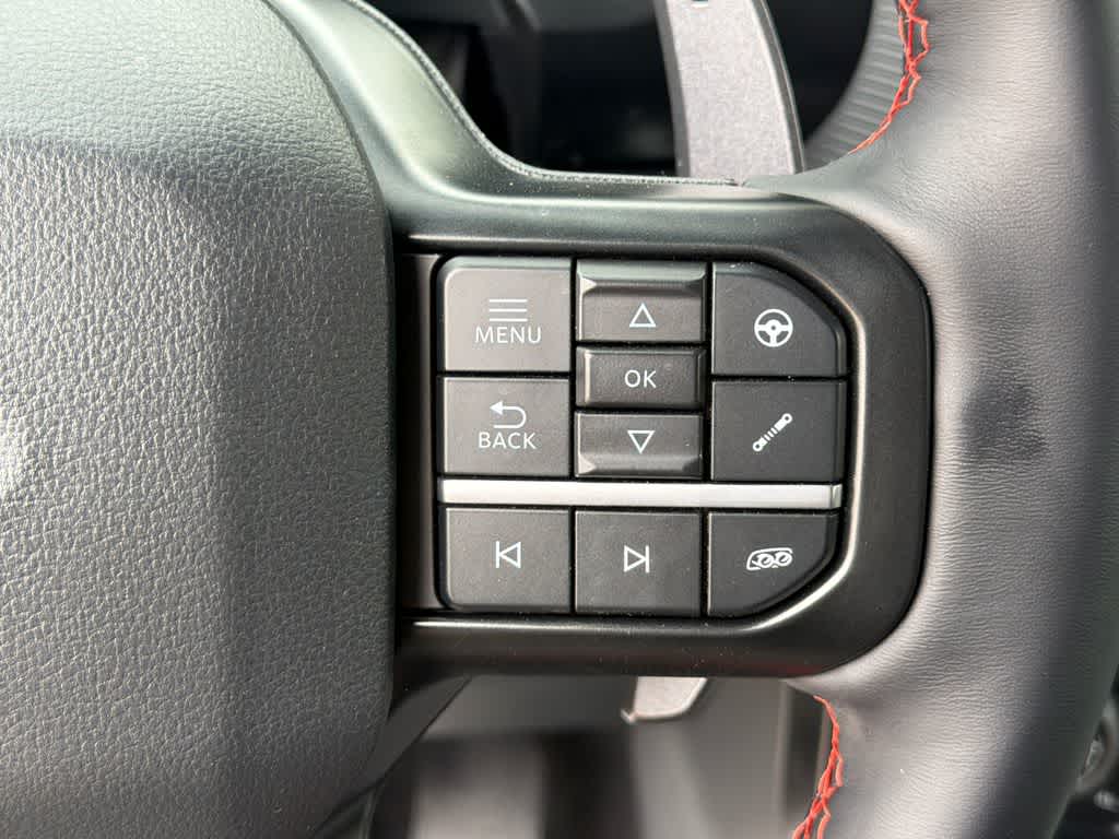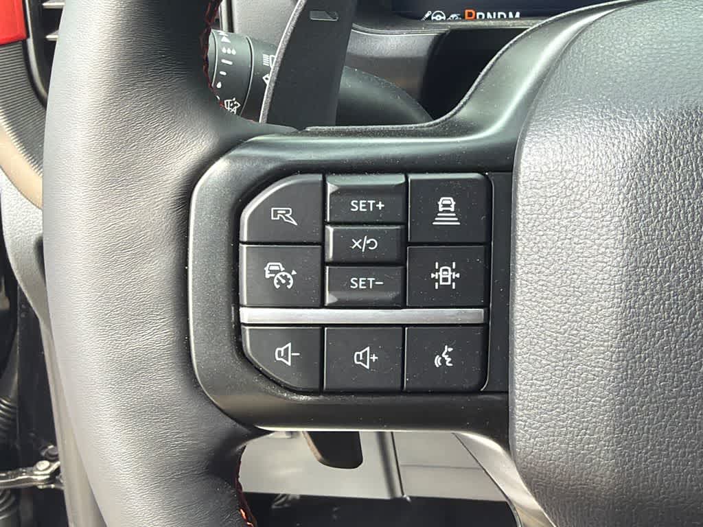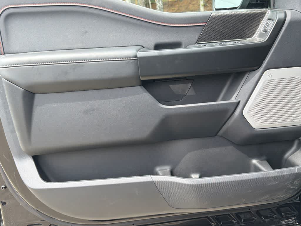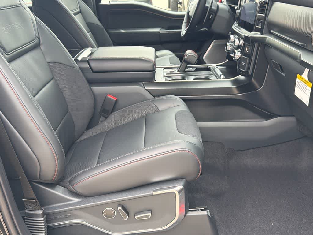 F-150 Raptor is nicely equipped with Equipment Group 801A Standard (17 Cast Aluminum Wheels, Electronic Locking with 4.10 Axle Ratio, Leather Trimmed Seats, Radio: B&O Unleashed Sound System by Bang & Olufsen, and SYNC 4 with Enhanced Voice Recognition), Ford Connectivity Package (1-Year Included), Internet access capable: 5G Modem - Ford Connectivity Package, 4WD, 14 Speakers, 4-Wheel Disc Brakes, ABS brakes, Adjustable pedals, Air Conditioning, Alloy wheels, AM/FM radio: SiriusXM with 360L, Auto High-beam Headlights, Auto tilt-away steering wheel, Auto-dimming door mirrors, Auto-dimming Rear-View mirror, Automatic temperature control, Brake assist, Bumpers: body-color, Compass, Delay-off headlights, Driver door bin, Driver vanity mirror, Drivers Side SecuriCode Keyless-Entry Keypad, Dual front impact airbags, Dual front side impact airbags, Electronic Stability Control, Emergency communication system: SYNC 4 911 Assist, Front anti-roll bar, Front Bucket Seats, Front Center Armrest, Front dual zone A/C, Front fog lights, Front License Plate Bracket, Front reading lights, Front wheel independent suspension, Fully automatic headlights, Garage door transmitter, Heads-Up Display, Heated door mirrors, Heated front seats, Heated rear seats, Heated steering wheel, Illuminated entry, Lane Departure Warning System, Leather steering wheel, Low tire pressure warning, Memory seat, Navigation system: Connected Navigation, Occupant sensing airbag, Outside temperature display, Overhead airbag, Overhead console, Panic alarm, Passenger door bin, Passenger vanity mirror, Pedal memory, Power door mirrors, Power driver seat, Power passenger seat, Power steering, Power windows, Radio data system, Rain sensing wipers, Rear reading lights, Rear step bumper, Rear window defroster, Remote keyless entry, Security system, Speed control, Speed-sensing steering, Split folding rear seat, Steering wheel memory, Steering wheel mounted audio controls, Tachometer, Telescoping steering wheel, Tilt steering wheel, Tough Bed Spray-in Bedliner, Traction control, Trip computer, Turn signal indicator mirrors, Twin Panel Moonroof, Variably intermittent wipers, and Ventilated front seats.