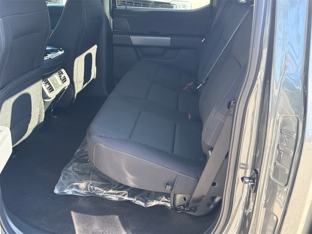 F-150 XLT is nicely equipped with Equipment Group 302A Mid (18 Painted Aluminum Wheels, 360 Degree Camera, 400W Pro Power Onboard (cab & Bed), Adaptive Cruise Control with Stop and Go, AEB Oncoming, Auto-Dimming Rear-View Mirror, Body-Color Door Handles, Chrome Front and Rear Bumpers, Cloth 40/20/40 Front Seat, Dual-Zone Electronic Automatic Temperature Control, Ford Co-Pilot360 Assist 2.0, Front Parking Sensors, Heated Front Seats, Intelligent Access with Push Button Start, Power Glass Heated Sideview Mirrors, Power-Sliding Rear Window, Radio: AM/FM Stereo with SiriusXM 360L, Remote Start System with Remote Tailgate Release, SYNC 4 with Enhanced Voice Recognition, Towing Technology, and Wrapped Steering Wheel), Ford Connectivity Package (1-Year Included), Internet access capable: 5G Modem - Ford Connectivity Package, XLT Black Appearance Package (Unique Sport Cloth 40/Console/40 Front-Seats), 4WD, 4-Wheel Disc Brakes, 6 Speakers, ABS brakes, Air Conditioning, Alloy wheels, AM/FM radio: SiriusXM with 360L, Auto High-beam Headlights, Brake assist, Bumpers: body-color, Compass, Delay-off headlights, Driver door bin, Driver vanity mirror, Dual front impact airbags, Dual front side impact airbags, Electronic Stability Control, Emergency communication system: SYNC 4 911 Assist, Front anti-roll bar, Front Center Armrest, Front fog lights, Front reading lights, Front wheel independent suspension, Fully automatic headlights, Heated door mirrors, Illuminated entry, Low tire pressure warning, Occupant sensing airbag, Outside temperature display, Overhead airbag, Overhead console, Panic alarm, Passenger door bin, Passenger vanity mirror, Power door mirrors, Power steering, Power windows, Radio data system, Rear Parking Sensors, Rear reading lights, Rear step bumper, Rear window defroster, Remote keyless entry, Security system, Speed control, Split folding rear seat, Steering wheel mounted audio controls, Tachometer, Telescoping steering wheel, Tilt steering wheel, Traction control, Trip computer, and Variably intermittent wipers.