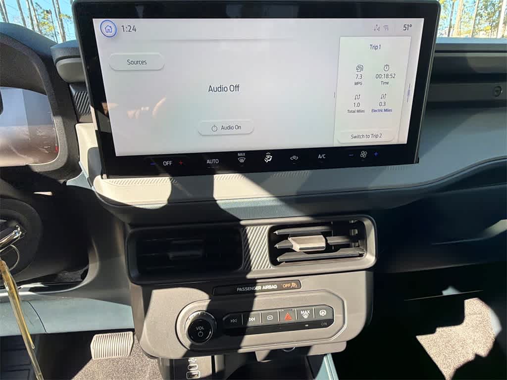 Maverick XL is nicely equipped with Equipment Group 100A (Front Cloth Bucket Seats, Radio: AM/FM Stereo with 6 Speakers, SiriusXM with 360L, SYNC 4 with Enhanced Voice Recognition, and Wheels: 17 Steel with Sparkle Silver Painted Cover), Ford Connectivity Package (1-Year Included), Internet access capable: 5G Modem - Ford Connectivity Package, 2.5L I-4 Hybrid, 2.91 Axle Ratio, 2K Trailer Hitch Receiver with 4-Pin Connector, 4-Wheel Disc Brakes, 6 Speakers, ABS brakes, Air Conditioning, AM/FM radio: SiriusXM with 360L, Apple CarPlay/Android Auto, Auto High Beams, Auto High-beam Headlights, Automatic temperature control, Brake assist, Bumpers: body-color, Compass, Delay-off headlights, Driver door bin, Driver vanity mirror, Dual front impact airbags, Dual front side impact airbags, Electronic Stability Control, Emergency communication system: SYNC 4 911 Assist, Exterior Parking Camera Rear, Front anti-roll bar, Front Bucket Seats, Front Center Armrest, Front reading lights, Front wheel independent suspension, Fully automatic headlights, Illuminated entry, Intersection Assist, Knee airbag, Lane-Keeping System, Low tire pressure warning, Occupant sensing airbag, Outside temperature display, Overhead airbag, Overhead console, Panic alarm, Passenger door bin, Passenger vanity mirror, Power steering, Power windows, Pre-Collision Assist with Automatic Emergency Braking, Radio data system, Rear anti-roll bar, Rear step bumper, Rear-View Camera, Remote keyless entry, Speed control, Speed-sensing steering, Steering wheel mounted audio controls, Telescoping steering wheel, Tilt steering wheel, Tough Bed Spray-in Bedliner, Traction control, and Trip computer.