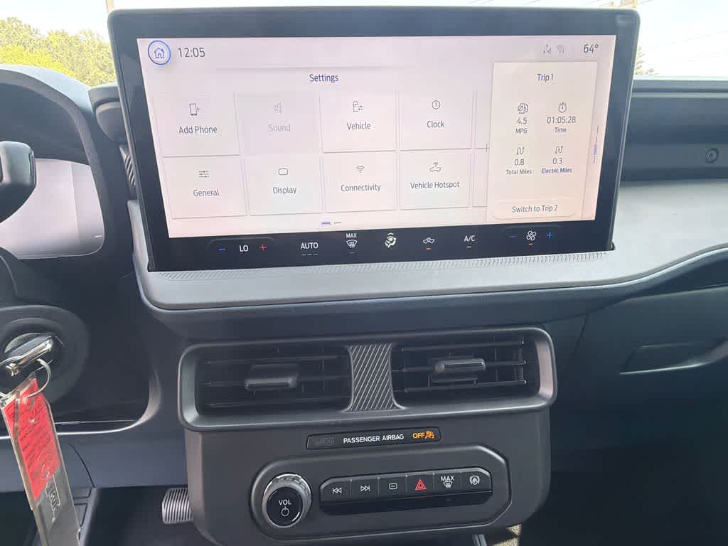 Maverick XL is nicely equipped with Ford Connectivity Package (1-Year Included), Internet access capable: 5G Modem - Ford Connectivity Package, 2.5L I-4 Hybrid, 2.91 Axle Ratio, 4-Wheel Disc Brakes, 6 Speakers, ABS brakes, Air Conditioning, AM/FM radio: SiriusXM with 360L, Apple CarPlay/Android Auto, Auto High Beams, Auto High-beam Headlights, Automatic temperature control, Brake assist, Bumpers: body-color, Compass, Delay-off headlights, Driver door bin, Driver vanity mirror, Dual front impact airbags, Dual front side impact airbags, Electronic Stability Control, Emergency communication system: SYNC 4 911 Assist, Exterior Parking Camera Rear, Front anti-roll bar, Front Bucket Seats, Front Center Armrest, Front Cloth Bucket Seats, Front reading lights, Front wheel independent suspension, Fully automatic headlights, Illuminated entry, Intersection Assist, Knee airbag, Lane-Keeping System, Low tire pressure warning, Occupant sensing airbag, Outside temperature display, Overhead airbag, Overhead console, Panic alarm, Passenger door bin, Passenger vanity mirror, Power steering, Power windows, Pre-Collision Assist with Automatic Emergency Braking, Radio data system, Radio: AM/FM Stereo with 6 Speakers, Rear anti-roll bar, Rear step bumper, Rear-View Camera, Remote keyless entry, SiriusXM with 360L, Speed control, Speed-sensing steering, Steering wheel mounted audio controls, SYNC 4 with Enhanced Voice Recognition, Telescoping steering wheel, Tilt steering wheel, Traction control, Trip computer, and Wheels: 17 Steel with Sparkle Silver Painted Cover.