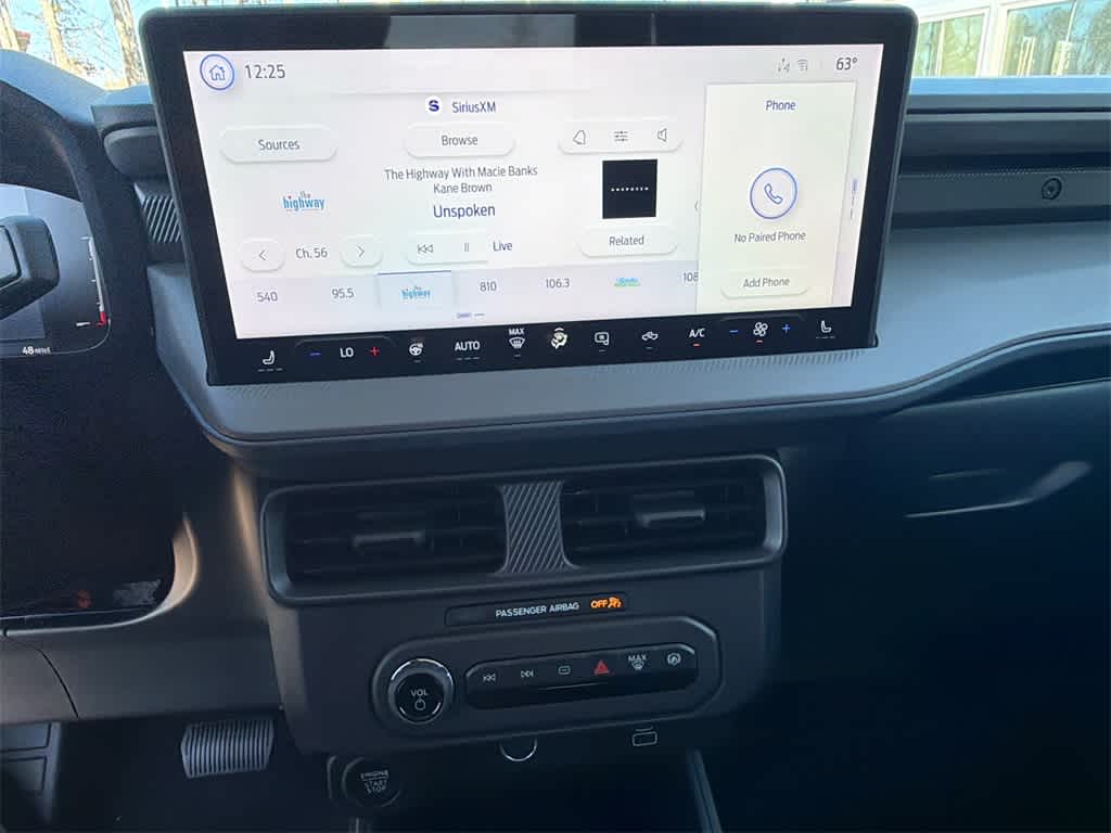 Maverick XLT is nicely equipped with 4K Tow Package (Trailer Brake Controller, Trailer Hitch (class III) 2 Receiver, and Upgraded Cooling Fan), Black Appearance Package (Black Grille, Black Interior Accents, Black Painted Mirrors, Unique Cloth Front Bucket Seats with Black Appearance, and Wheels: 19 Black Painted Aluminum), Equipment Group 302A (Radio: AM/FM Stereo with 6 Speakers, SiriusXM with 360L, SYNC 4 with Enhanced Voice Recognition, Unique Cloth Front Bucket Seats, and Wheels: 17 Carbonized Gray Painted Aluminum), Ford Co-Pilot360 (Auto High Beams, BLIS with Cross-Traffic Alert and Trailer Coverage, Exit Warning, Intersection Assist, Lane-Keeping System, Power Glass Manual-Folding Mirrors, Pre-Collision Assist with Automatic Emergency Braking, Rear Cross Traffic Braking, Rear Parking Sensors, and Rear-View Camera), Ford Connectivity Package (1-Year Included), Internet access capable: 5G Modem - Ford Connectivity Package, XLT Luxury Package (Heated Mirror with Painted Black Skull Caps, Heated Seats, LED Box Lighting, Pro Power Onboard - 400W, Remote Start System, and Soft Vinyl Wrapped Heated Steering Wheel), 2.91 Axle Ratio, 4-Wheel Disc Brakes, 6 Speakers, ABS brakes, Air Conditioning, Alloy wheels, AM/FM radio: SiriusXM with 360L, Apple CarPlay/Android Auto, Auto High-beam Headlights, Automatic temperature control, Brake assist, Bumpers: body-color, Compass, Delay-off headlights, Driver door bin, Driver vanity mirror, Dual front impact airbags, Dual front side impact airbags, Electronic Stability Control, Emergency communication system: SYNC 4 911 Assist, Exterior Parking Camera Rear, Four wheel independent suspension, Front anti-roll bar, Front Bucket Seats, Front Center Armrest, Front reading lights, Fully automatic headlights, Illuminated entry, Knee airbag, Low tire pressure warning, Occupant sensing airbag, Outside temperature display, Overhead airbag, Overhead console, Panic alarm, Passenger door bin, Passenger vanity mirror, Power door mirrors, Power steering, Power windows, Radio data system, Rear anti-roll bar, Rear seat center armrest, Rear step bumper, Remote keyless entry, Security system, Speed control, Speed-sensing steering, Steering wheel mounted audio controls, Telescoping steering wheel, Tilt steering wheel, Tough Bed Spray-in Bedliner, Traction control, and Trip computer. Price includes: $500 - Retail Customer Cash. Exp. 03/31/2026