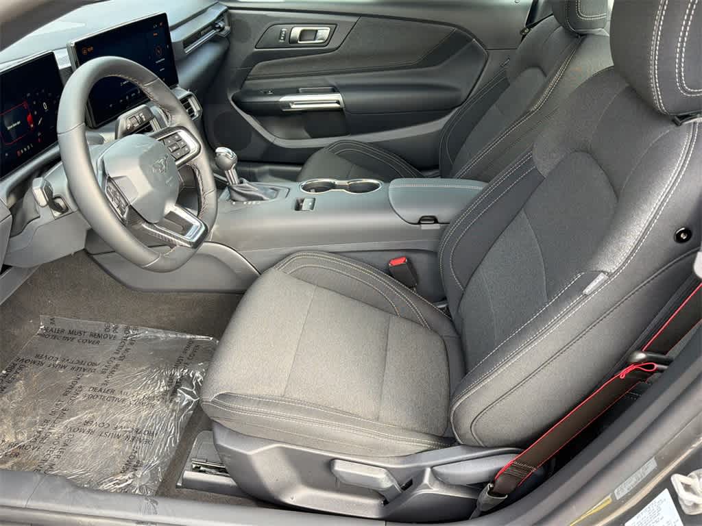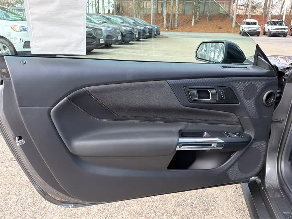 Mustang EcoBoost is nicely equipped with Mustang Nite Pony Package (Black Mirror Caps, Painted Black Roof, and Wheels: 19 x 8.5 Ebony Black-Painted Aluminum), 1st Row Carpeted Black Floor Mats, 4-Wheel Disc Brakes, ABS brakes, Air Conditioning, Alloy wheels, AM/FM Stereo, Auto High-beam Headlights, Automatic temperature control, Brake assist, Bumpers: body-color, Compass, Delay-off headlights, Driver door bin, Driver vanity mirror, Dual front impact airbags, Dual front side impact airbags, Electronic Stability Control, Emergency communication system: 911 Assist, Exterior Parking Camera Rear, Four wheel independent suspension, Front anti-roll bar, Front Bucket Seats, Front Center Armrest, Front dual zone A/C, Front reading lights, Fully automatic headlights, Illuminated entry, Knee airbag, Leather Shift Knob, Low tire pressure warning, Occupant sensing airbag, Outside temperature display, Overhead airbag, Overhead console, Panic alarm, Passenger door bin, Passenger vanity mirror, Power door mirrors, Power steering, Power windows, Radio data system, Rain sensing wipers, Rear anti-roll bar, Rear Parking Sensors, Rear window defroster, Remote keyless entry, Speed control, Speed-sensing steering, Speed-Sensitive Wipers, Split folding rear seat, Sport steering wheel, Steering wheel mounted audio controls, SYNC 4, Tachometer, Telescoping steering wheel, Tilt steering wheel, Traction control, Trip computer, Variably intermittent wipers, Voltmeter, and Wedge Decklid Spoiler.
