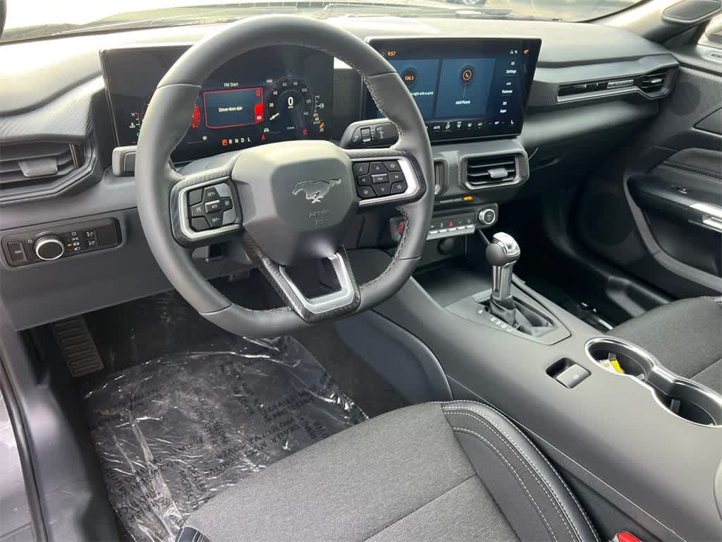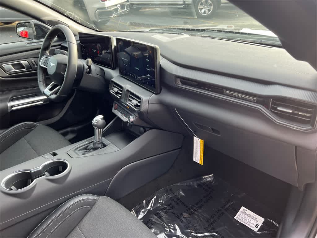 Mustang EcoBoost is nicely equipped with Mustang Nite Pony Package (Black Mirror Caps, Painted Black Roof, and Wheels: 19 x 8.5 Ebony Black-Painted Aluminum), 1st Row Carpeted Black Floor Mats, 4-Wheel Disc Brakes, ABS brakes, Air Conditioning, Alloy wheels, AM/FM Stereo, Auto High-beam Headlights, Automatic temperature control, Brake assist, Bumpers: body-color, Compass, Delay-off headlights, Driver door bin, Driver vanity mirror, Dual front impact airbags, Dual front side impact airbags, Electronic Stability Control, Emergency communication system: 911 Assist, Exterior Parking Camera Rear, Four wheel independent suspension, Front anti-roll bar, Front Bucket Seats, Front Center Armrest, Front dual zone A/C, Front reading lights, Fully automatic headlights, Illuminated entry, Knee airbag, Leather Shift Knob, Low tire pressure warning, Occupant sensing airbag, Outside temperature display, Overhead airbag, Overhead console, Panic alarm, Passenger door bin, Passenger vanity mirror, Power door mirrors, Power steering, Power windows, Radio data system, Rain sensing wipers, Rear anti-roll bar, Rear Parking Sensors, Rear window defroster, Remote keyless entry, Speed control, Speed-sensing steering, Speed-Sensitive Wipers, Split folding rear seat, Sport steering wheel, Steering wheel mounted audio controls, SYNC 4, Tachometer, Telescoping steering wheel, Tilt steering wheel, Traction control, Trip computer, Variably intermittent wipers, Voltmeter, and Wedge Decklid Spoiler.