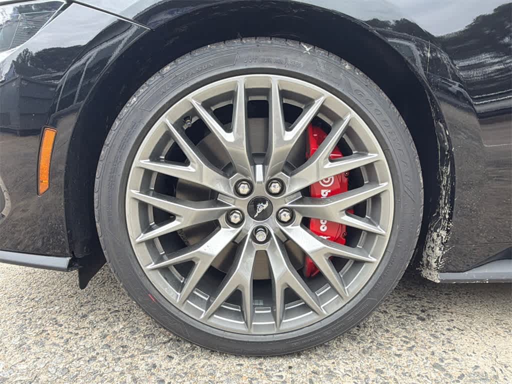 Mustang GT Premium is nicely equipped with Anti-Theft Package (Wheel Locking Kit), Equipment Group 401A High Package (Aluminum Foot Pedals, AM/FM Stereo, and SYNC 4), Ford Co-Pilot360 Assist+, 1st Row Carpeted Black Floor Mats, 3.55 Limited Slip Rear Axle, 4-Wheel Disc Brakes, ABS brakes, Active Valve Performance Exhaust, Air Conditioning, Alloy wheels, Auto High-beam Headlights, Automatic temperature control, Brake assist, Bumpers: body-color, Compass, Delay-off headlights, Driver door bin, Driver vanity mirror, Dual front impact airbags, Dual front side impact airbags, Electronic Stability Control, Emergency communication system: 911 Assist, Exterior Parking Camera Rear, Four wheel independent suspension, Front anti-roll bar, Front Bucket Seats, Front Center Armrest, Front dual zone A/C, Front reading lights, Fully automatic headlights, Illuminated entry, Knee airbag, Leather Shift Knob, Leather steering wheel, Low tire pressure warning, Occupant sensing airbag, Outside temperature display, Overhead airbag, Overhead console, Panic alarm, Passenger door bin, Passenger vanity mirror, Power door mirrors, Power steering, Power windows, Race Red Seat Belt, Radio data system, Rain sensing wipers, Rear anti-roll bar, Rear Parking Sensors, Rear window defroster, Remote keyless entry, Speed control, Speed-sensing steering, Speed-Sensitive Wipers, Split folding rear seat, Sport steering wheel, Steering wheel mounted audio controls, Tachometer, Telescoping steering wheel, Tilt steering wheel, Traction control, Trip computer, Variably intermittent wipers, Voltmeter, and Wheels: 20 x 9 Premium-Painted Aluminum.