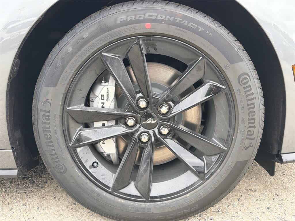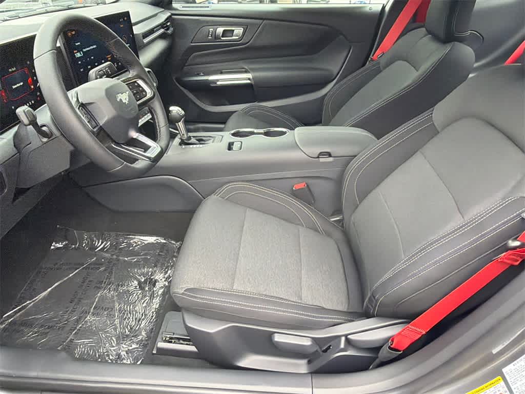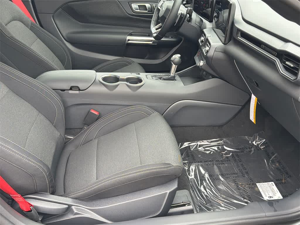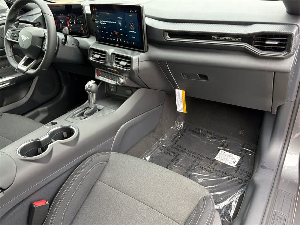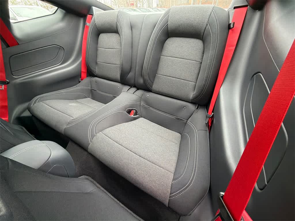 Mustang GT is nicely equipped with Equipment Group 300A Standard Package (AM/FM Stereo, Cloth Bucket Seats, and SYNC 4), 1st Row Carpeted Black Floor Mats, 4-Wheel Disc Brakes, ABS brakes, Air Conditioning, Alloy wheels, Auto High-beam Headlights, Automatic temperature control, Black Painted Wedge Decklid Spoiler, Brake assist, Bumpers: body-color, Compass, Delay-off headlights, Driver door bin, Driver vanity mirror, Dual front impact airbags, Dual front side impact airbags, Electronic Stability Control, Emergency communication system: 911 Assist, Exterior Parking Camera Rear, Four wheel independent suspension, Front anti-roll bar, Front Bucket Seats, Front Center Armrest, Front dual zone A/C, Front reading lights, Fully automatic headlights, Illuminated entry, Knee airbag, Leather Shift Knob, Leather steering wheel, Low tire pressure warning, Occupant sensing airbag, Outside temperature display, Overhead airbag, Overhead console, Panic alarm, Passenger door bin, Passenger vanity mirror, Power door mirrors, Power steering, Power windows, Race Red Seat Belt, Radio data system, Rain sensing wipers, Rear anti-roll bar, Rear Parking Sensors, Rear window defroster, Remote keyless entry, Speed control, Speed-sensing steering, Speed-Sensitive Wipers, Split folding rear seat, Sport steering wheel, Steering wheel mounted audio controls, Tachometer, Telescoping steering wheel, Tilt steering wheel, Traction control, Trip computer, Variably intermittent wipers, Voltmeter, and Wedge Decklid Spoiler.