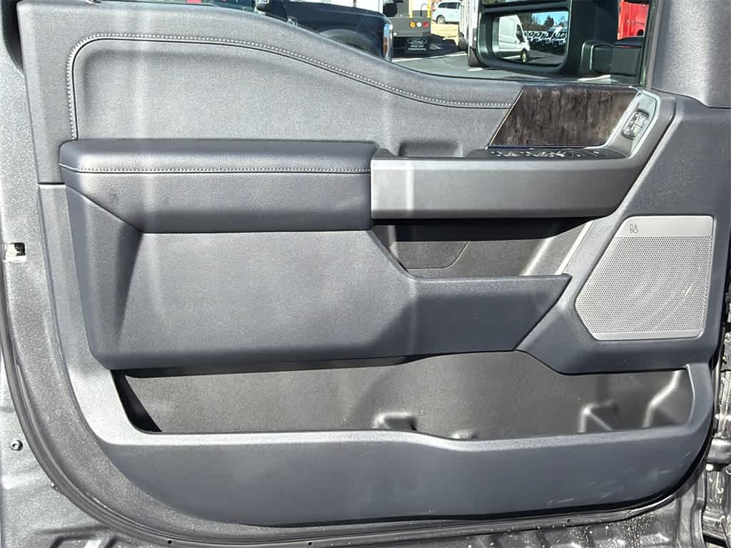 F-250 SuperDuty Lariat is nicely equipped with 5th Wheel/Gooseneck Hitch Prep Package, Black Appearance Package (6 Ebony Black Angular Running Boards, Black Painted Front Grille Surround, Ebony Black Painted Mirror Caps, and Wheels: 20 Ebony Black High Gloss), Ford Connectivity Package (1-Year Included), FX4 Off-Road Package (Hill Descent Control, Off-Road Specifically Tuned Shock Absorbers, and Unique FX4 Off-Road Box Decal), Internet access capable: 5G Modem - Ford Connectivity Package, Lariat Premium Package (Privacy Glass, Pro Trailer Backup Assist, and Pro Trailer Hitch Assist), Lariat Ultimate Package (4-Way Adjustable Headrests, Head-Up Display, Power-Deployable Running Boards, and Radio: B&O Unleashed Sound System by Bang & Olufsen), Order Code 608A (Flow-Through Console and Front ActiveX Trimmed 40/Console/40 Seats), 4WD, 4-Wheel Disc Brakes, 8 Speakers, ABS brakes, Adjustable pedals, Air Conditioning, All-Weather Floor Mats, Alloy wheels, AM/FM radio: SiriusXM with 360L, Auto High-beam Headlights, Auto-dimming Rear-View mirror, Automatic High Beam, Automatic temperature control, Brake assist, Bumpers: chrome, Compass, Delay-off headlights, Driver door bin, Driver vanity mirror, Dual AGM 68 AH Battery, Dual front impact airbags, Dual front side impact airbags, Electronic Stability Control, Emergency communication system: SYNC 4 911 Assist, Engine Block Heater, Front anti-roll bar, Front Bucket Seats, Front Center Armrest, Front dual zone A/C, Front fog lights, Front License Plate Bracket, Front reading lights, Fully automatic headlights, Garage door transmitter, Heated door mirrors, Heated front seats, Heated rear seats, Heated steering wheel, Illuminated entry, Lane-Keeping System, Low tire pressure warning, Memory seat, Navigation system: Connected Navigation, Outside temperature display, Overhead airbag, Overhead console, Panic alarm, Passenger door bin, Passenger vanity mirror, Pedal memory, Post-Collision Braking, Power door mirrors, Power driver seat, Power passenger seat, Power steering, Power windows, Pre-Collision Assist, Rain sensing wipers, Rear Parking Sensors, Rear reading lights, Rear seat center armrest, Rear step bumper, Rear window defroster, Remote keyless entry, Security system, Speed control, Split folding rear seat, Steering wheel mounted audio controls, Tachometer, Telescoping steering wheel, Tilt steering wheel, Traction control, Trip computer, Turn signal indicator mirrors, Twin Panel Power Moonroof, Upfitter Switches (6), Variably intermittent wipers, and Ventilated front seats.