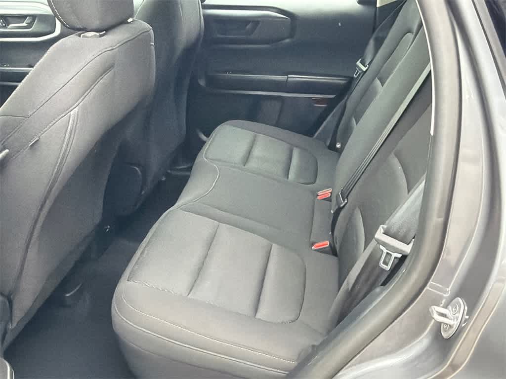 Bronco Sport Base is nicely equipped with Equipment Group 100A, 3.80 Axle Ratio, 4-Wheel Disc Brakes, 6 Speakers, ABS brakes, Air Conditioning, Alloy wheels, AM/FM radio, AM/FM Stereo, Auto High-beam Headlights, Brake assist, Cloth Front Bucket Seats, Compass, Delay-off headlights, Driver door bin, Driver vanity mirror, Dual front impact airbags, Dual front side impact airbags, Electronic Stability Control, Emergency communication system: SYNC 3 911 Assist, Exterior Parking Camera Rear, Four wheel independent suspension, Front anti-roll bar, Front Bucket Seats, Front Center Armrest, Front reading lights, Fully automatic headlights, Illuminated entry, Knee airbag, Low tire pressure warning, Occupant sensing airbag, Outside temperature display, Overhead airbag, Overhead console, Panic alarm, Passenger door bin, Passenger vanity mirror, Power door mirrors, Power steering, Power windows, Radio data system, Rear anti-roll bar, Rear reading lights, Rear window defroster, Rear window wiper, Remote keyless entry, Roof rack: rails only, Security system, Speed control, Speed-sensing steering, Speed-Sensitive Wipers, Split folding rear seat, Steering wheel mounted audio controls, SYNC 3 Communications & Entertainment System, SYNC 3/Apple CarPlay/Android Auto, Tachometer, Telescoping steering wheel, Tilt steering wheel, Traction control, Trip computer, Variably intermittent wipers, and Wheels: 17 Sparkle Silver.