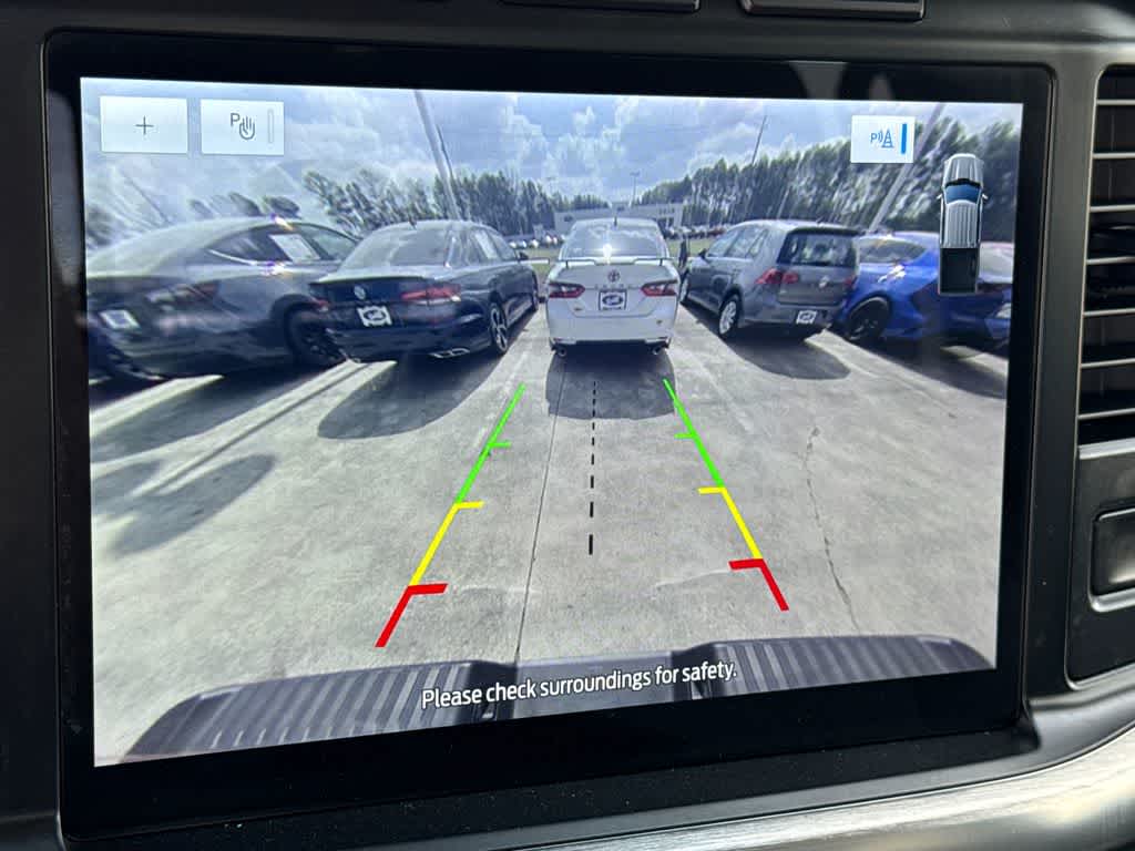 F-150 Lariat is nicely equipped with Equipment Group 501A Mid (Onboard 400W Outlet, Radio: B&O Sound System by Bang & Olufsen, and Universal Garage Door Opener), Lariat Chrome Appearance Package (6 Bright Polished Running Board, Chrome 2-Bar Grille w/4 Minor Bars, Chrome Door & Tailgate Handles w/Body-Color Bezel, Chrome Single-Tip Exhaust, Chrome Skull Caps on Exterior Mirrors, and Wheels: 18 Chrome-Like PVD), Trailer Tow Package (Class IV Trailer Hitch Receiver, Integrated Trailer Brake Controller, and Pro Trailer Backup Assist), Ford Blue Certified Certified, 3.5L PowerBoost Full-Hybrid V6, 18 Machined-Aluminum Wheels, 4-Wheel Disc Brakes, 7 Speakers, ABS brakes, Adjustable pedals, Air Conditioning, Alloy wheels, AM/FM radio: SiriusXM with 360L, Auto High-beam Headlights, Auto-dimming door mirrors, Auto-dimming Rear-View mirror, Automatic temperature control, BoxLink, Brake assist, Bumpers: chrome, Compass, Connected Navigation & SiriusXM w/360L Removal, Delay-off headlights, Driver door bin, Driver vanity mirror, Dual front impact airbags, Dual front side impact airbags, Electronic Stability Control, Emergency communication system: SYNC 4 911 Assist, Exterior Parking Camera Rear, Front anti-roll bar, Front Center Armrest w/Storage, Front dual zone A/C, Front fog lights, Front License Plate Bracket, Front reading lights, Front wheel independent suspension, Fully automatic headlights, Heated door mirrors, Heated front seats, Illuminated entry, Leather-Trimmed 40/20/40 Front Seat, Low tire pressure warning, Memory seat, Navigation System, Occupant sensing airbag, Outside temperature display, Overhead airbag, Overhead console, Panic alarm, Passenger door bin, Passenger vanity mirror, Pedal memory, Power door mirrors, Power driver seat, Power passenger seat, Power steering, Power windows, Radio data system, Radio: AM/FM SiriusXM w/360L, Rear reading lights, Rear seat center armrest, Rear step bumper, Rear window defroster, Remote keyless entry, Security system, Speed control, Speed-sensing steering, Split folding rear seat, Steering wheel mounted audio controls, SYNC 4 w/Enhanced Voice Recognition, Tachometer, Telescoping steering wheel, Tilt steering wheel, Traction control, Trip computer, Turn signal indicator mirrors, Variably intermittent wipers, Ventilated front seats, and Voltmeter.