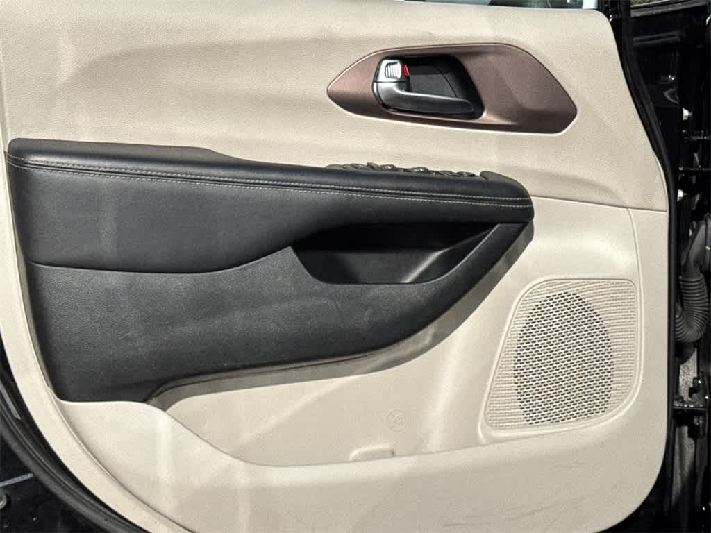 Voyager LX is nicely equipped with Quick Order Package 27E, 17 x 7 Aluminum Wheels, 3.25 Axle Ratio, 3rd row seats: split-bench, 4-Wheel Disc Brakes, 6 Speakers, ABS brakes, Air Conditioning, Alloy wheels, AM/FM radio: SiriusXM, Apple CarPlay, Apple CarPlay/Android Auto, Automatic temperature control, Black Seats, Brake assist, Bumpers: body-color, Cloth Bucket Seats, Compass, Delay-off headlights, Driver door bin, Driver vanity mirror, Drivers Seat Mounted Armrest, Dual front impact airbags, Dual front side impact airbags, Electronic Stability Control, Exterior Mirrors w/Heating Element, Four wheel independent suspension, Front anti-roll bar, Front Bucket Seats, Front dual zone A/C, Front reading lights, Fully automatic headlights, Google Android Auto, GPS Antenna Input, Heated door mirrors, Heated front seats, Heated steering wheel, Illuminated entry, Knee airbag, Low tire pressure warning, Occupant sensing airbag, Outside temperature display, Overhead airbag, Overhead console, Panic alarm, ParkView Rear Back-Up Camera, Passenger door bin, Passenger seat mounted armrest, Passenger vanity mirror, Power door mirrors, Power driver seat, Power Liftgate, Power steering, Power windows, Radio data system, Radio: Uconnect 5 w/7 Display, Rear air conditioning, Rear window defroster, Rear window wiper, Reclining 3rd row seat, Remote keyless entry, Security system, Speed control, Split folding rear seat, Spoiler, Steering wheel mounted audio controls, Tachometer, Telescoping steering wheel, Tilt steering wheel, Touring Suspension, Traction control, Trip computer, USB Host Flip, Variably intermittent wipers, and Voltmeter.