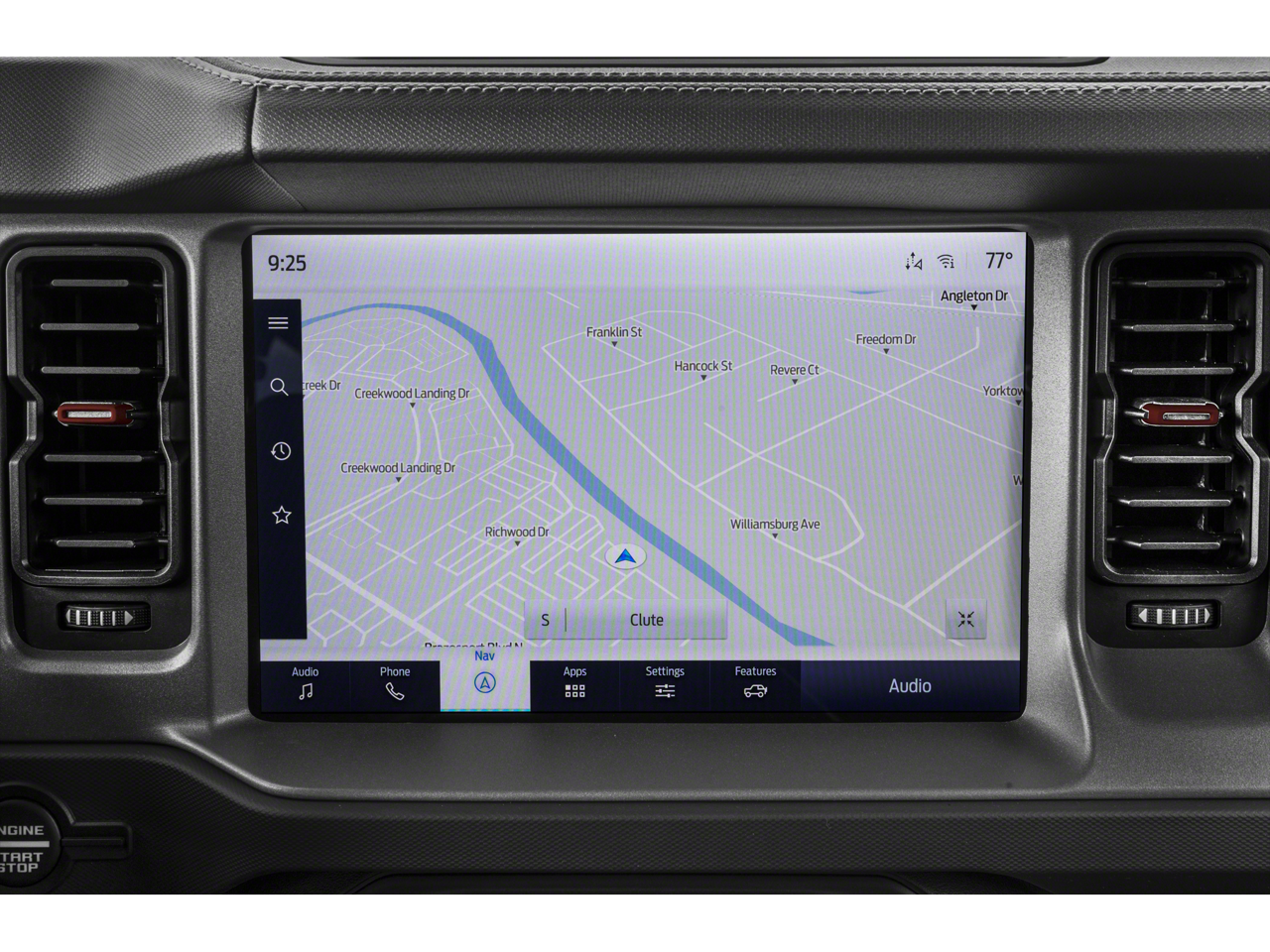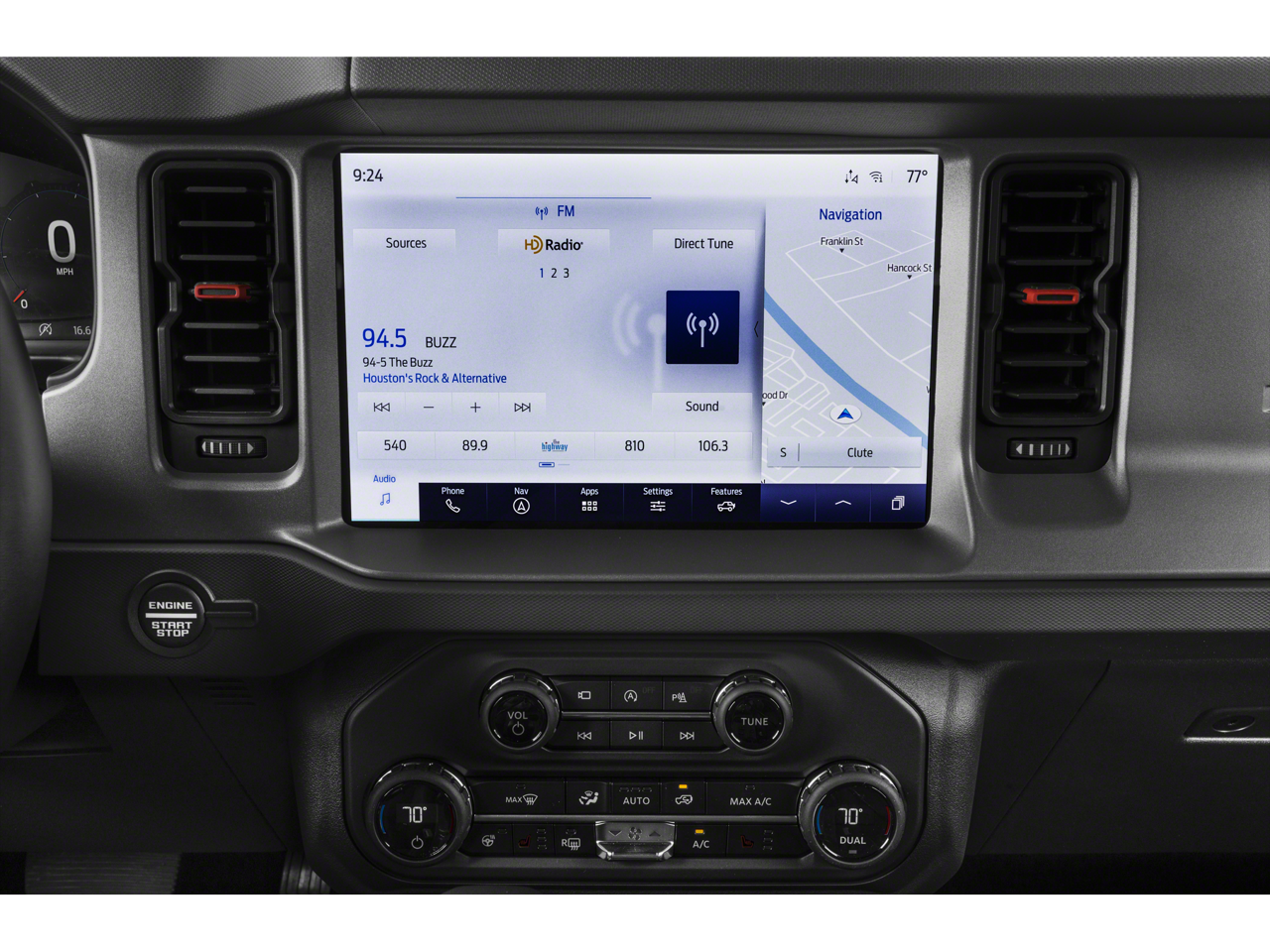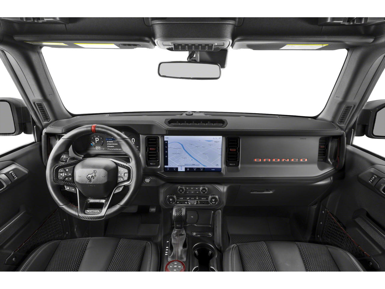 Bronco Raptor is nicely equipped with Equipment Group 374A Lux Package, Lux Package (10 Speakers w/Subwoofer, 2 Smart Charging USB Ports In Dashboard, Adaptive Cruise Control, Connected Built-In Navigation, Evasive Steering Assist, Heated Steering Wheel, Radio: B&O Sound System by Bang & Olufsen, Universal Garage Door Opener, and Wireless Charging Pad), 4-Wheel Disc Brakes, 4.7 Axle Ratio, 7 Speakers, ABS brakes, Air Conditioning, Alloy wheels, AM/FM radio: SiriusXM with 360L, AM/FM Stereo, Auto High-beam Headlights, Auto-dimming Rear-View mirror, Automatic temperature control, Brake assist, Compass, Connected Navigation, Convertible HardTop, Convertible roof lining, Delay-off headlights, Driver door bin, Driver vanity mirror, Dual front impact airbags, Dual front side impact airbags, Electronic Stability Control, Emergency communication system: 911 Assist, Exterior Parking Camera Rear, Front anti-roll bar, Front Bucket Seats, Front Center Armrest, Front dual zone A/C, Front fog lights, Front reading lights, Front wheel independent suspension, Fully automatic headlights, Glass rear window, Hard Top Sound Deadening Headliner (DISC), Heated door mirrors, Heated front seats, Illuminated entry, Integrated roll-over protection, Interior Carbon Fiber Pack 6, Leather Shift Knob, Low tire pressure warning, Marine Grade Vinyl Bucket Seats, Navigation system: Connected Navigation, Occupant sensing airbag, Outside temperature display, Overhead airbag, Overhead console, Panic alarm, Passenger door bin, Passenger vanity mirror, Power door mirrors, Power steering, Power windows, Radio data system, Rear anti-roll bar, Rear seat center armrest, Rear window defroster, Rear window wiper, Remote keyless entry, Security system, SiriusXM Radio w/360L, Speed control, Split folding rear seat, Steering wheel mounted audio controls, SYNC 4, Tachometer, Telescoping steering wheel, Tilt steering wheel, Traction control, Trip computer, Turn signal indicator mirrors, Upgraded Raptor Graphic, Variably intermittent wipers, Voltmeter, Wheels: 17 Black High Gloss-Painted Aluminum, and Wheels: 17 Dark Carbonized Gray Alloy Painted.