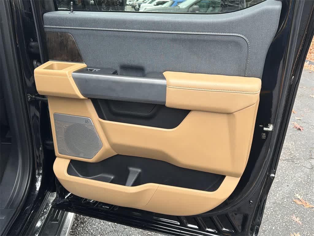 F-150 Lariat is nicely equipped with Bed Utility Package (BoxLink, LED Box Lighting, Power Tailgate, and Tailgate Step w/Tailgate Work Surface), Equipment Group 501A Standard, FX4 Off-Road Package, Trailer Tow Package (Class IV Trailer Hitch Receiver, Integrated Trailer Brake Controller, and Pro Trailer Backup Assist & Pro Trailer Hitch Assist), 4WD, 4-Wheel Disc Brakes, 8 Speakers, ABS brakes, Adjustable pedals, Air Conditioning, Alloy wheels, AM/FM radio: SiriusXM with 360L, Auto High-beam Headlights, Auto-dimming door mirrors, Auto-dimming Rear-View mirror, Automatic temperature control, Brake assist, Bumpers: chrome, Chrome wheels, Compass, Delay-off headlights, Driver door bin, Driver vanity mirror, Dual front impact airbags, Dual front side impact airbags, Electronic Stability Control, Emergency communication system: SYNC 4 911 Assist, Extended Range 36 Gallon Fuel Tank, Exterior Parking Camera Rear, Front anti-roll bar, Front Bucket Seats, Front Center Armrest, Front dual zone A/C, Front fog lights, Front reading lights, Front wheel independent suspension, Fully automatic headlights, Garage door transmitter, Heated door mirrors, Heated front seats, Heated steering wheel, Illuminated entry, Inclination/Intrusion Sensor Removal, Leather-Trimmed Bucket Seats, LED Sideview Mirror Spotlights, Low tire pressure warning, Memory seat, Occupant sensing airbag, Outside temperature display, Overhead airbag, Overhead console, Panic alarm, Passenger door bin, Passenger vanity mirror, Pedal memory, Power door mirrors, Power driver seat, Power passenger seat, Power steering, Power windows, Radio data system, Radio: B&O Sound System by Bang & Olufsen, Rear reading lights, Rear seat center armrest, Rear step bumper, Rear window defroster, Remote keyless entry, Security system, Speed control, Speed-sensing steering, Split folding rear seat, Steering wheel mounted audio controls, SYNC 4 w/Enhanced Voice Recognition, Tachometer, Telescoping steering wheel, Tilt steering wheel, Traction control, Tray Style Floor Liner (47W), Trip computer, Turn signal indicator mirrors, Variably intermittent wipers, Ventilated front seats, Voltmeter, Wheels: 18 Chrome-Like PVD, Wheels: 20 Chrome-Like PVD, and Wireless Charging Pad.