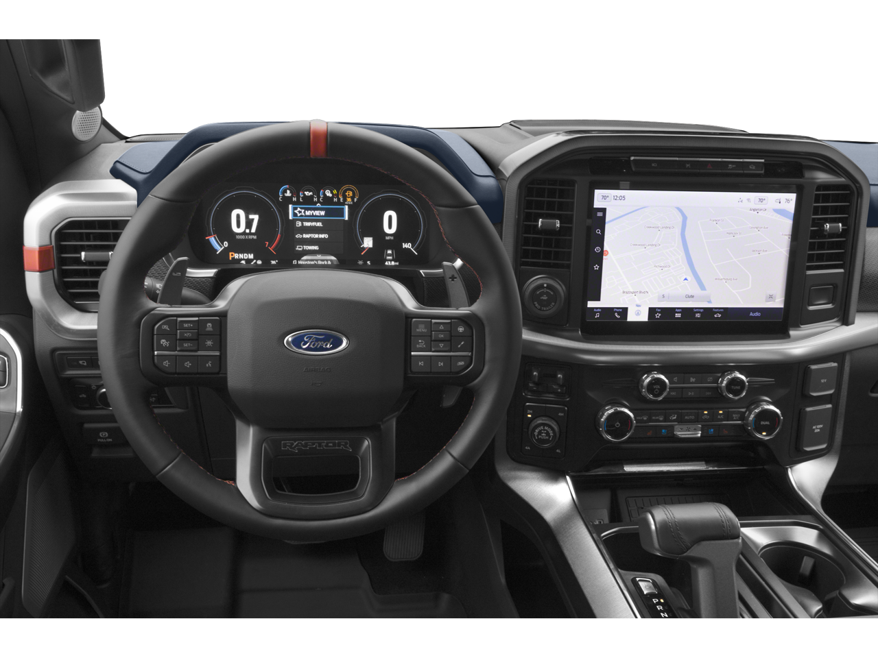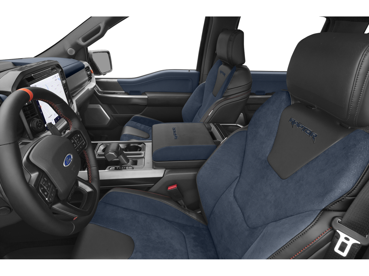F-150 Raptor is nicely equipped with Equipment Group 801A Standard, GVWR: 7,300 lbs Payload Package, Moonroof & Tailgate (Power Tailgate and Twin Panel Moonroof), Raptor Carbon Fiber Package, 4WD, 17 Cast Aluminum Wheels, 17 Forged Aluminum Bead-Lock Capable Wheels, 18 Speakers, 4-Wheel Disc Brakes, ABS brakes, Adaptive suspension, Adjustable pedals, Air Conditioning, Alloy wheels, AM/FM radio: SiriusXM with 360L, Auto High-beam Headlights, Auto Start-Stop Removal (DISC), Auto tilt-away steering wheel, Auto-dimming door mirrors, Auto-dimming Rear-View mirror, Automatic temperature control, Brake assist, Bumpers: body-color, Compass, Delay-off headlights, Driver door bin, Driver vanity mirror, Dual front impact airbags, Dual front side impact airbags, Electronic Locking w/4.10 Axle Ratio, Electronic Stability Control, Emergency communication system, Engine Block Heater, Exterior Parking Camera Rear, Front anti-roll bar, Front Bucket Seats, Front Center Armrest, Front dual zone A/C, Front fog lights, Front License Plate Bracket, Front reading lights, Front wheel independent suspension, Fully automatic headlights, Garage door transmitter, Heated door mirrors, Heated front seats, Heated rear seats, Heated steering wheel, Illuminated entry, Inclination/Intrusion Sensor Removal, Lane Departure Warning System, Leather Trim Seats w/Heated 2nd Row, Low tire pressure warning, Memory seat, Navigation system: Connected Navigation, Occupant sensing airbag, Outside temperature display, Overhead airbag, Overhead console, Panic alarm, Passenger door bin, Passenger vanity mirror, Pedal memory, Power door mirrors, Power driver seat, Power passenger seat, Power steering, Power windows, Radio data system, Radio: B&O Unleashed Sound System by Bang & Olufsen, Rain sensing wipers, Rear reading lights, Rear step bumper, Rear window defroster, Remote keyless entry, Security system, Speed control, Speed-sensing steering, Split folding rear seat, Steering Wheel Heat Removal (DISC), Steering wheel memory, Steering wheel mounted audio controls, SYNC 4 w/Enhanced Voice Recognition, Tachometer, Telescoping steering wheel, Tilt steering wheel, Tough Bed Spray-In Bedliner, Traction control, Trip computer, Turn signal indicator mirrors, Variably intermittent wipers, and Ventilated front seats.