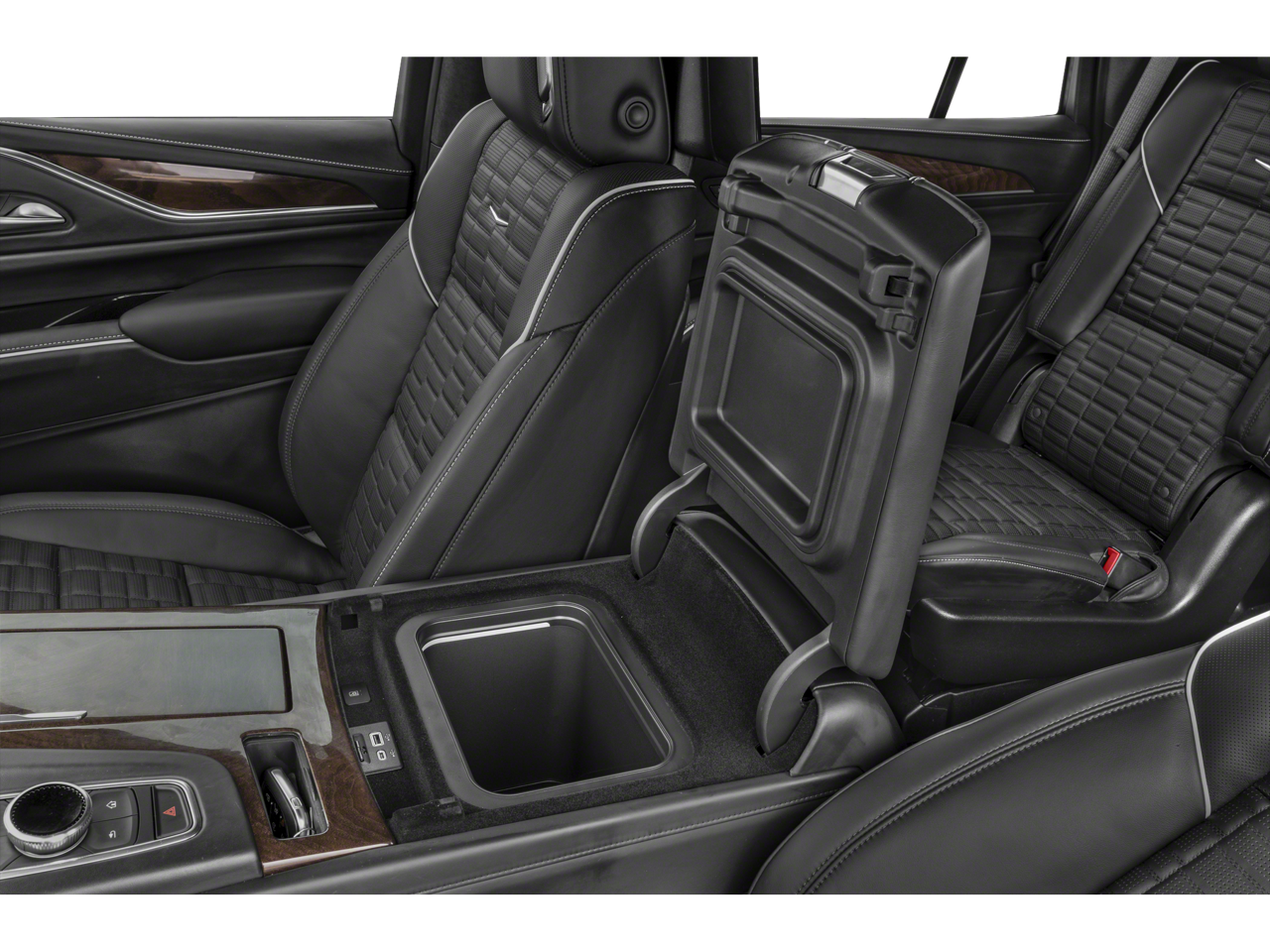 Escalade Sport is nicely equipped with All-Weather Floor Liner Package (LPO), Floor Liner Package (LPO) (All-Weather Integrated Cargo Liner (LPO)), Onyx Package (LPO) (Gloss Black Escalade Nameplate (LPO), Monochrome Cadillac Emblems (LPO), Puddle Lamps w/Cadillac Crest (LPO), Wheels: 22 12-Spoke Gloss Black Alloy (LPO), and Wheels: 22 Interim (LPO)), Preferred Equipment Group 1SC (Adaptive Cruise Control, AKG Studio 19-Speaker Audio System, Automatic Seat Belt Tightening, Body-Color Door Handles, Door Lock & Latch Shields, Electronic Limited-Slip Differential, Enhanced Automatic Emergency Braking, Enhanced Automatic Parking Assist, Glass Breakage Sensor, Heated & Ventilated Driver & Front Passenger Seats, Hitch Guidance w/Hitch View, Integrated Trailer Brake Controller, Power Panoramic Tilt-Sliding Sunroof, Rear Camera Mirror, Rear Camera Mirror Washer, Rear Cross Traffic Alert, Reconfigurable Full-Color Head-Up Display, Reverse Automatic Braking, Running Board Assist Steps, Smart Trailer Integration Indicator, Theft-Deterrent Alarm System, Trailer Side Blind Zone Alert, Vehicle Inclination Sensor, and Vehicle Interior Movement Sensor), Touring Package (Air Ride Adaptive Suspension, Illuminating Front & Rear Sill Plates, and Soft Closing Front & Rear Doors), AWD, Black Leather, 16.9 Diagonal OLED Infotainment Screen, 19 Speakers, 2-Presets Memory For Driver Seat Adjuster, 3.23 Axle Ratio, 3rd row seats: split-bench, 4-Way Power Driver Lumbar Seat Adjuster, 4-Way Power Front Passenger Lumbar Seat Adjuster, 4-Wheel Disc Brakes, 8-Way Power Driver Seat Adjuster, 8-Way Power Front Passenger Seat Adjuster, ABS brakes, Adaptive suspension, Air Conditioning, Alloy wheels, AM/FM radio: SiriusXM with 360L, Apple CarPlay/Android Auto, Audio memory, Auto High-beam Headlights, Auto tilt-away steering wheel, Auto-dimming door mirrors, Auto-dimming Rear-View mirror, Automatic temperature control, Brake assist, Bumpers: body-color, Compass, Delay-off headlights, Driver door bin, Driver vanity mirror, Dual front impact airbags, Dual front side impact airbags, Electronic Stability Control, Emergency communication system: OnStar and Cadillac connected services capable, Exterior Parking Camera Rear, Four wheel independent suspension, Front anti-roll bar, Front Bucket Seats, Front Center Armrest w/Storage, Front dual zone A/C, Front reading lights, Fully automatic headlights, Garage door transmitter, HD Radio, Heads-Up Display, Heated door mirrors, Heated Driver & Front Passenger Seats, Heated front seats, Heated rear seats, Heated steering wheel, Illuminated entry, Leather Seating Surfaces w/Precision Perf Inserts, Low tire pressure warning, Magnetic Ride Control Suspension, Memory seat, Navigation System, Not Equipped w/2nd Row Express-Up Window Control, Occupant sensing airbag, Outside temperature display, Overhead airbag, Overhead console, Panic alarm, Passenger door bin, Passenger vanity mirror, Power door mirrors, Power driver seat, Power Liftgate, Power moonroof, Power passenger seat, Power steering, Power windows, Power-Retractable Assist Steps, Radio data system, Radio: AM/FM w/Navigation, Rain sensing wipers, Rear air conditioning, Rear anti-roll bar, Rear reading lights, Rear window defroster, Rear window wiper, Remote keyless entry, Security system, SiriusXM w/360L, Speed control, Split folding rear seat, Spoiler, Steering wheel memory, Steering wheel mounted audio controls, Tachometer, Teen Driver, Telescoping steering wheel, Tilt steering wheel, Traction control, Trip computer, Turn signal indicator mirrors, Variably intermittent wipers, Ventilated front seats, Voltmeter, Wheel Locks, Wheels: 22 12-Spoke Polished Alloy, and Wireless Apple CarPlay/Wireless Android Auto.