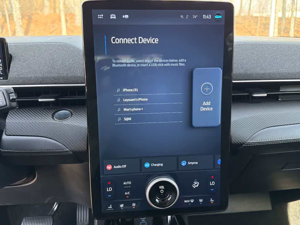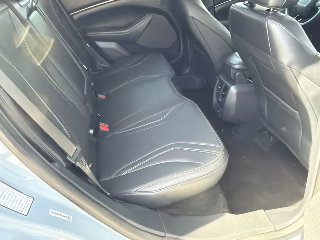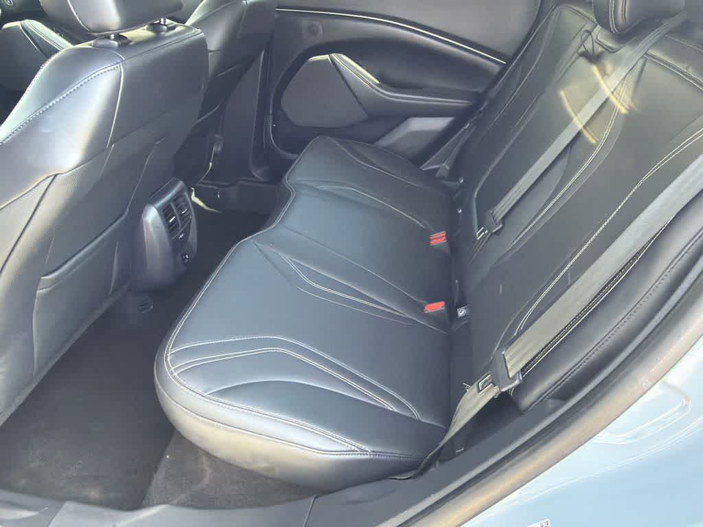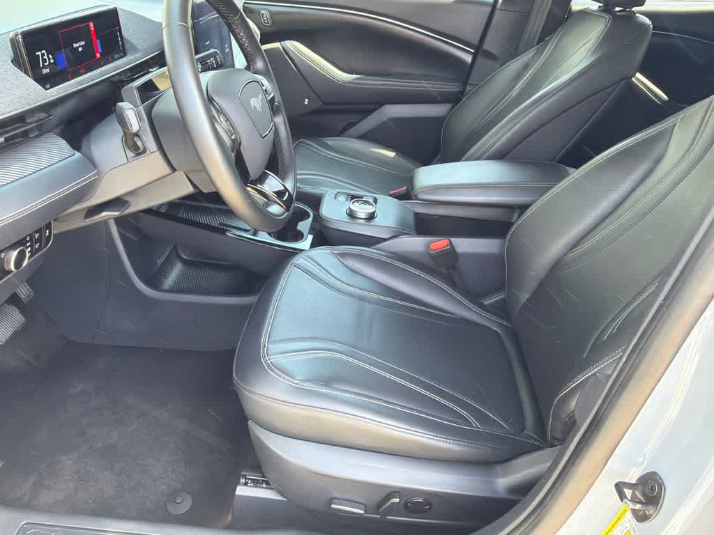 Mustang Mach-E Premium is nicely equipped with Equipment Group 300A, Ford Blue Certified Certified, 10 Speakers, 4-Wheel Disc Brakes, ABS brakes, Air Conditioning, Alloy wheels, AM/FM radio: SiriusXM with 360L, AM/FM Stereo, Apple CarPlay/Android Auto, Auto High-beam Headlights, Auto-dimming Rear-View mirror, Automatic temperature control, Axle Ratio: 9.791, Brake assist, Bumpers: body-color, Compass, Delay-off headlights, Driver door bin, Driver vanity mirror, Dual front impact airbags, Dual front side impact airbags, Electronic Stability Control, Emergency communication system: 911 Assist, Exterior Parking Camera Rear, Four wheel independent suspension, Front anti-roll bar, Front Bucket Seats, Front Center Armrest, Front dual zone A/C, Front License Plate Bracket, Front reading lights, Fully automatic headlights, Garage door transmitter, Heated door mirrors, Heated front seats, Heated Perforated ActiveX Bucket Seats, Heated steering wheel, Illuminated entry, Knee airbag, Low tire pressure warning, Memory seat, Navigation system: Connected Navigation, Occupant sensing airbag, Outside temperature display, Overhead airbag, Overhead console, Panic alarm, Passenger door bin, Passenger vanity mirror, Power door mirrors, Power driver seat, Power Liftgate, Power passenger seat, Power steering, Power windows, Radio data system, Rain sensing wipers, Rear anti-roll bar, Rear seat center armrest, Rear side impact airbag, Rear window defroster, Rear window wiper, Remote keyless entry, Security system, SiriusXM Radio w/360L, Speed control, Speed-sensing steering, Speed-Sensitive Wipers, Split folding rear seat, Spoiler, Steering wheel mounted audio controls, SYNC 4A w/Enhanced Voice Recognition, Telescoping steering wheel, Tilt steering wheel, Traction control, Trip computer, Turn signal indicator mirrors, Variably intermittent wipers, and Wheels: 19 Bright Machined-Face Aluminum.