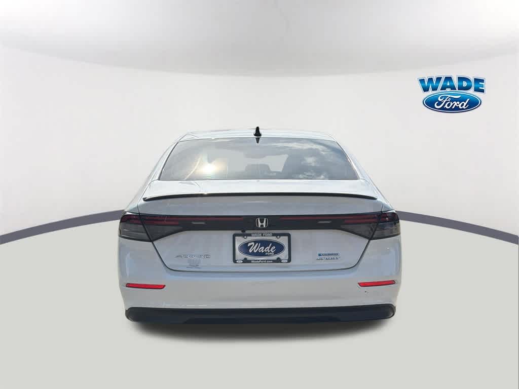 Accord Hybrid Sport is nicely equipped with Ford Blue Certified Non-Ford Certified, 2.0L 16V DOHC, 4-Wheel Disc Brakes, 8 Speakers, ABS brakes, Adaptive Cruise Control: Adaptive Cruise Control (ACC) with Low-Speed Follow, Air Conditioning, Alloy wheels, AM/FM radio, Apple CarPlay/Android Auto, Auto High-beam Headlights, Automatic temperature control, Blind Spot Information (BSI) System warning, Brake assist, Bumpers: body-color, Compass, Delay-off headlights, Driver door bin, Driver vanity mirror, Dual front impact airbags, Dual front side impact airbags, Electronic Stability Control, Emergency communication system: HondaLink, Exterior Parking Camera Rear, Fabric Seat Trim, Four wheel independent suspension, Front anti-roll bar, Front Bucket Seats, Front Center Armrest, Front dual zone A/C, Front reading lights, Fully automatic headlights, Illuminated entry, Knee airbag, Lane departure: Lane Keeping Assist System (LKAS) active, Leather Shift Knob, Leather steering wheel, Low tire pressure warning, Occupant sensing airbag, Outside temperature display, Overhead airbag, Overhead console, Panic alarm, Passenger door bin, Passenger vanity mirror, Power door mirrors, Power driver seat, Power moonroof, Power steering, Power windows, Radio data system, Radio: 180-Watt Audio System, Rear anti-roll bar, Rear reading lights, Rear seat center armrest, Rear side impact airbag, Rear window defroster, Remote keyless entry, Security system, Speed control, Speed-sensing steering, Speed-Sensitive Wipers, Split folding rear seat, Spoiler, Steering wheel mounted audio controls, Telescoping steering wheel, Tilt steering wheel, Traction control, Trip computer, Variably intermittent wipers, and Wheels: 19 x 8.5J Berlina Black.